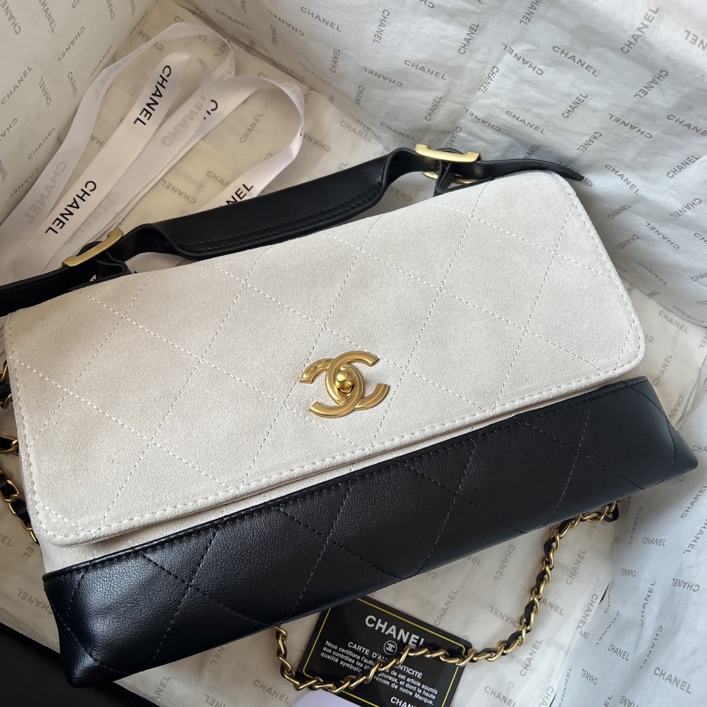 Smooth, delicate calfskin with top-grain nubuck leather exudes texture. The quilted pattern and classic Double C logo create a subtle, luxurious look! The distressed gold chain is adjustable, allowing you to carry it shoulder-only, crossbody, or in the hand. With its vintage-inspired texture, it's an instant hit! Practical and effortless, it's versatile and suitable for everyone!