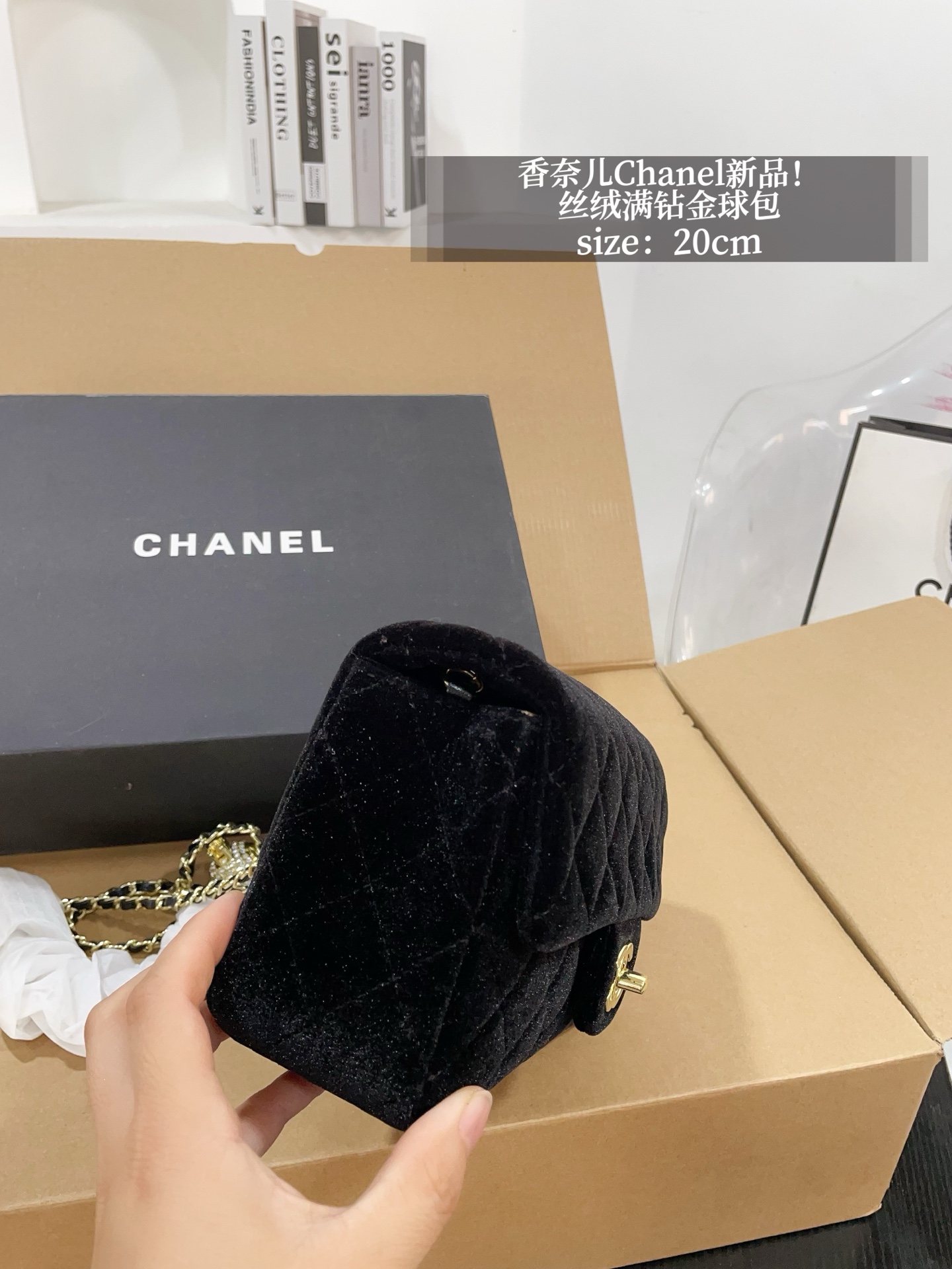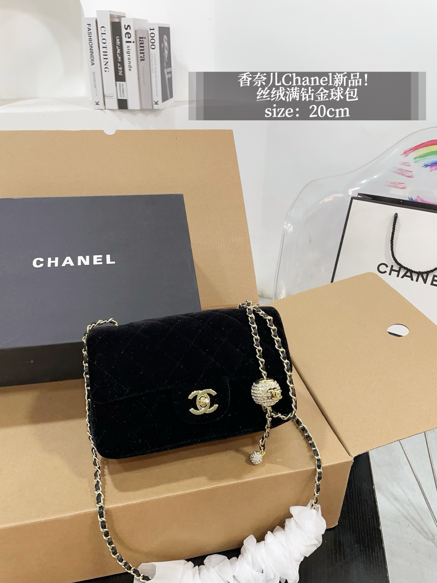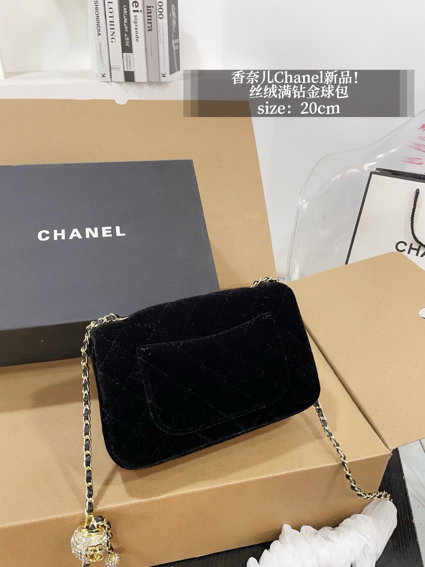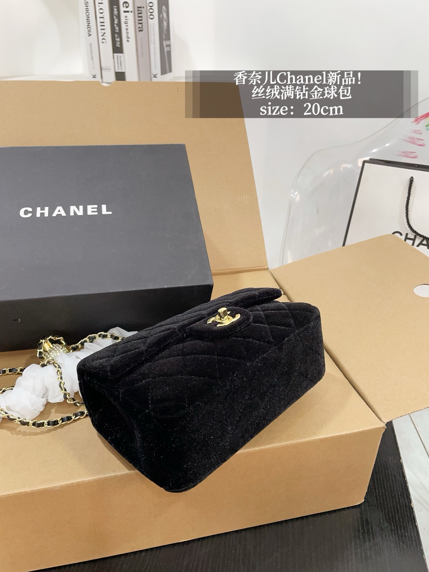 Chanel Velvet Crystal Ball Chain Bag 20cm