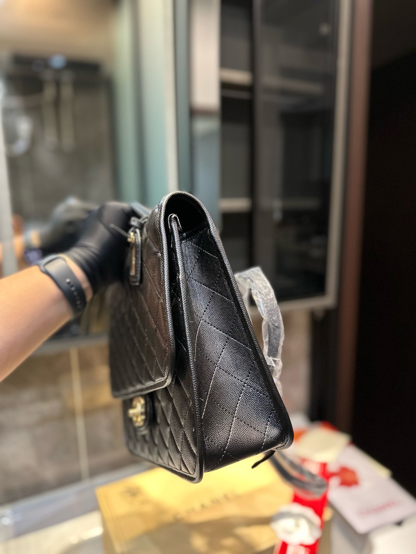 Chanel 25B Caviar Leather Star Box Bag 10A