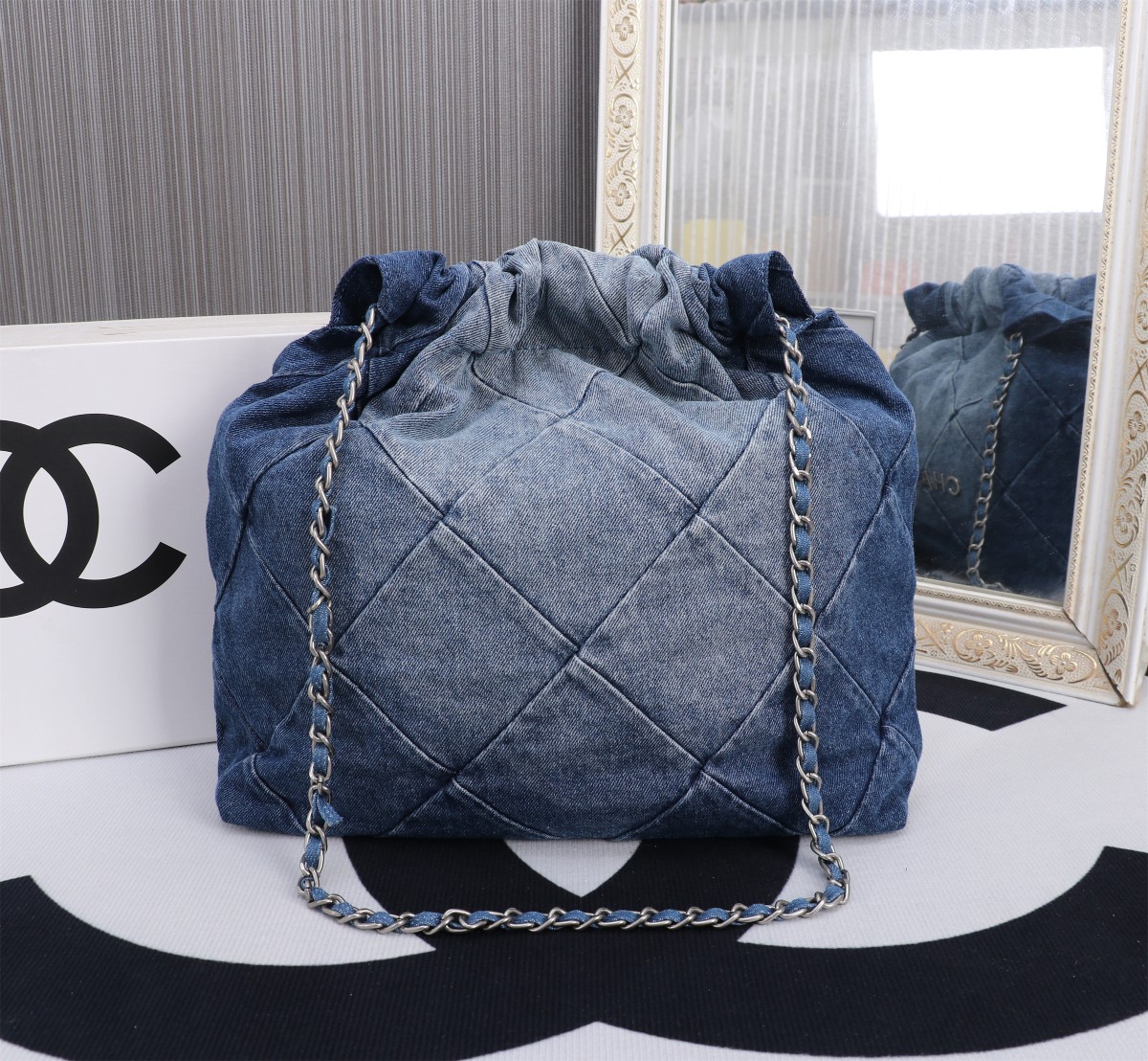 Chanel 23P 22 Bag 1162 in Denim with Washed Blue-to-White