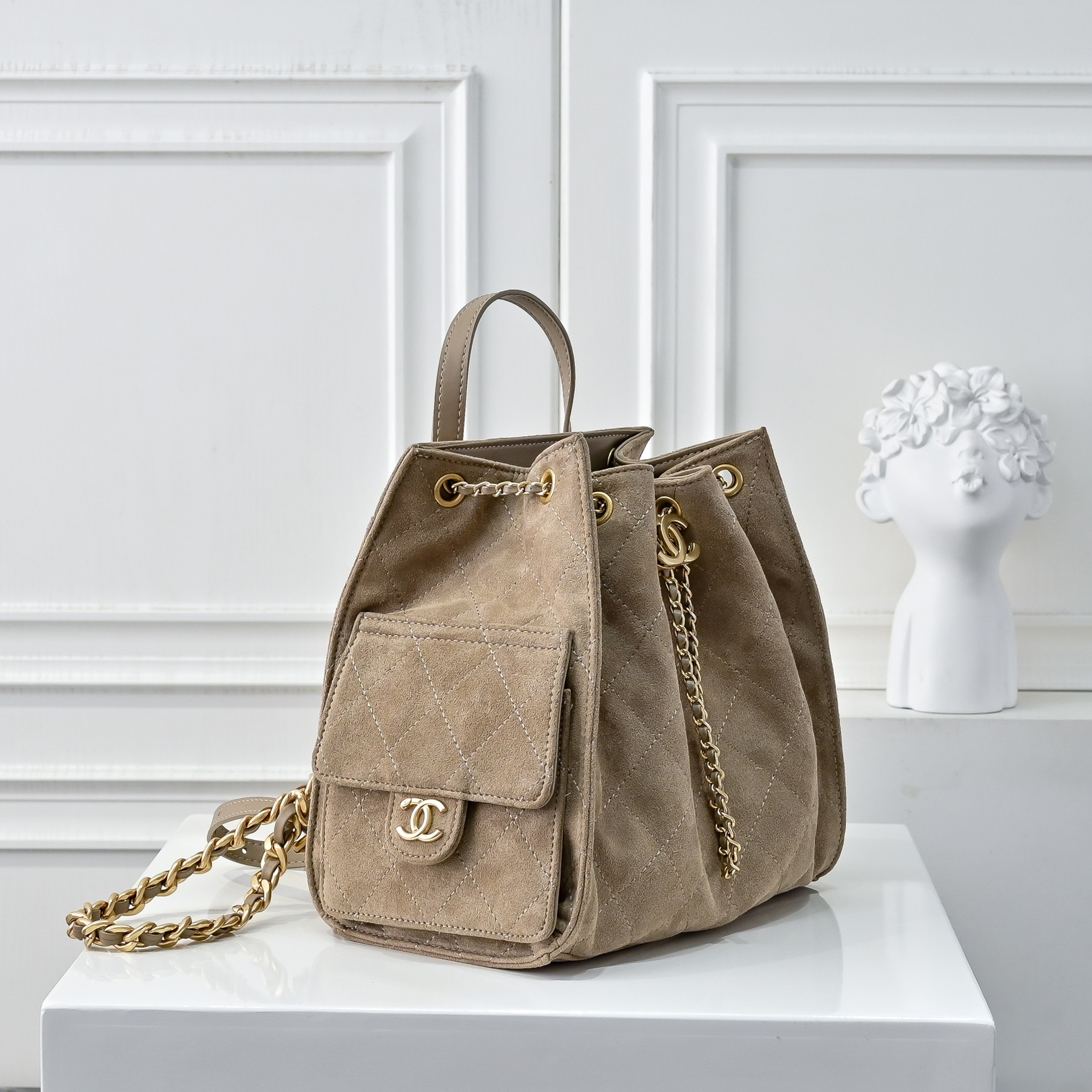 CHANEL 25C 7017 Small Suede Bucket Bag