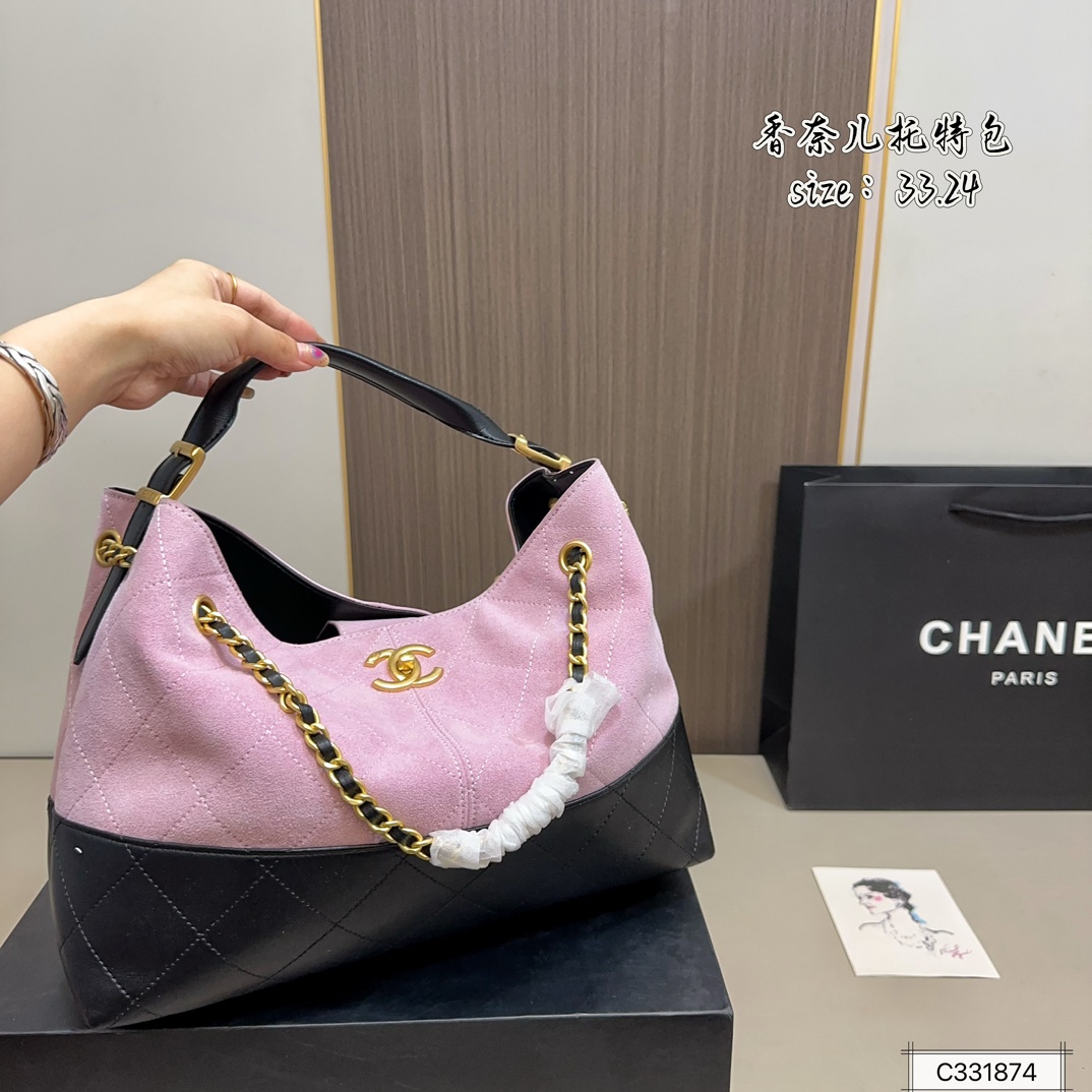 Chanel 24A 33cm Leather Patchwork Hobo Tote Bag 10A