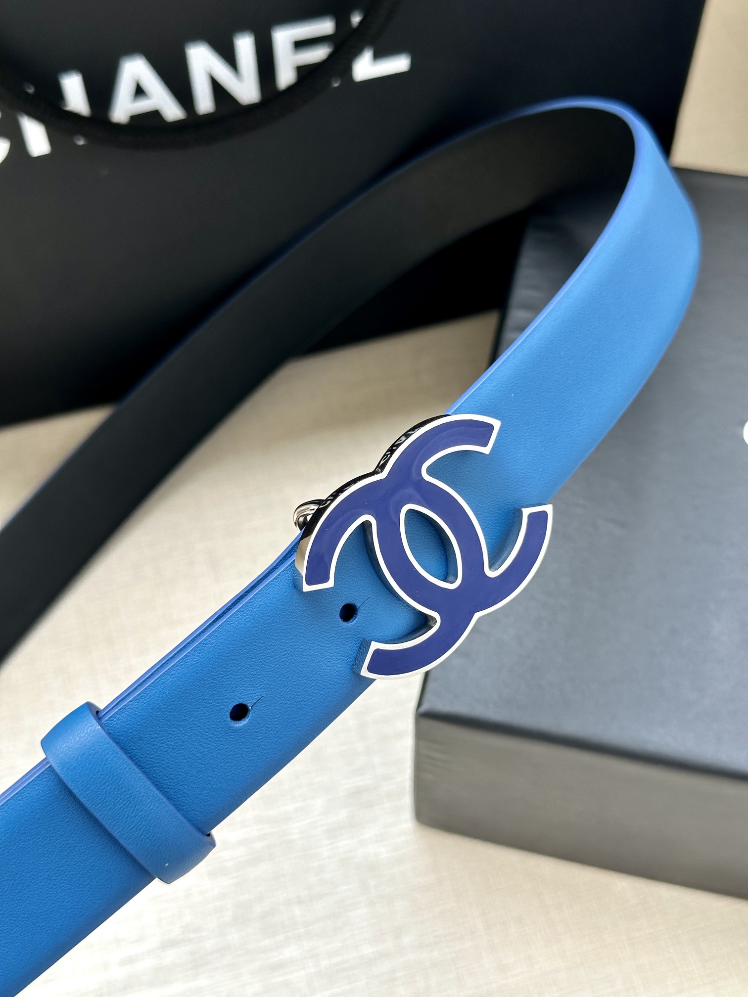 Chanel Belt With Double C Buckle White Gold Toned Hardware Women Belt 30MM