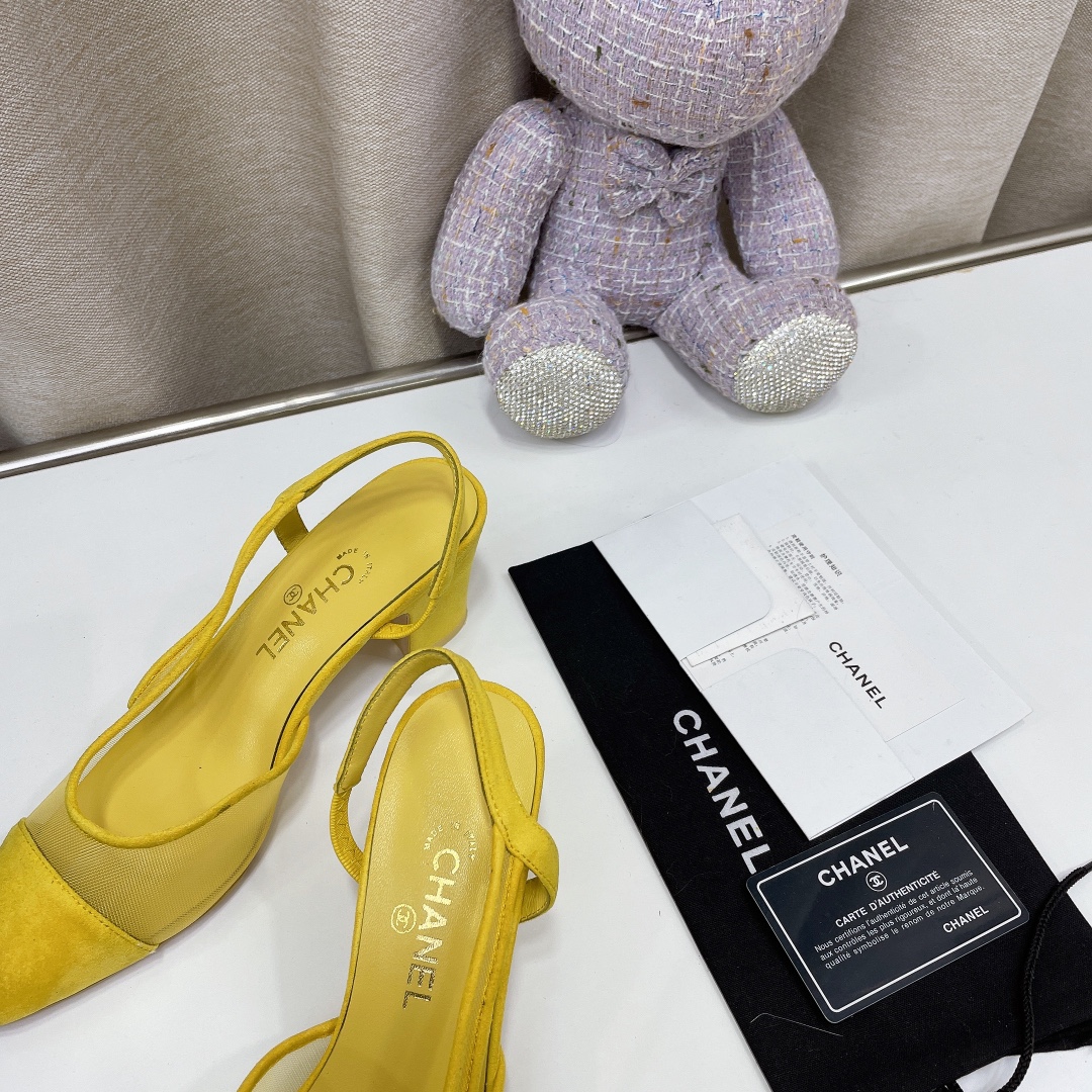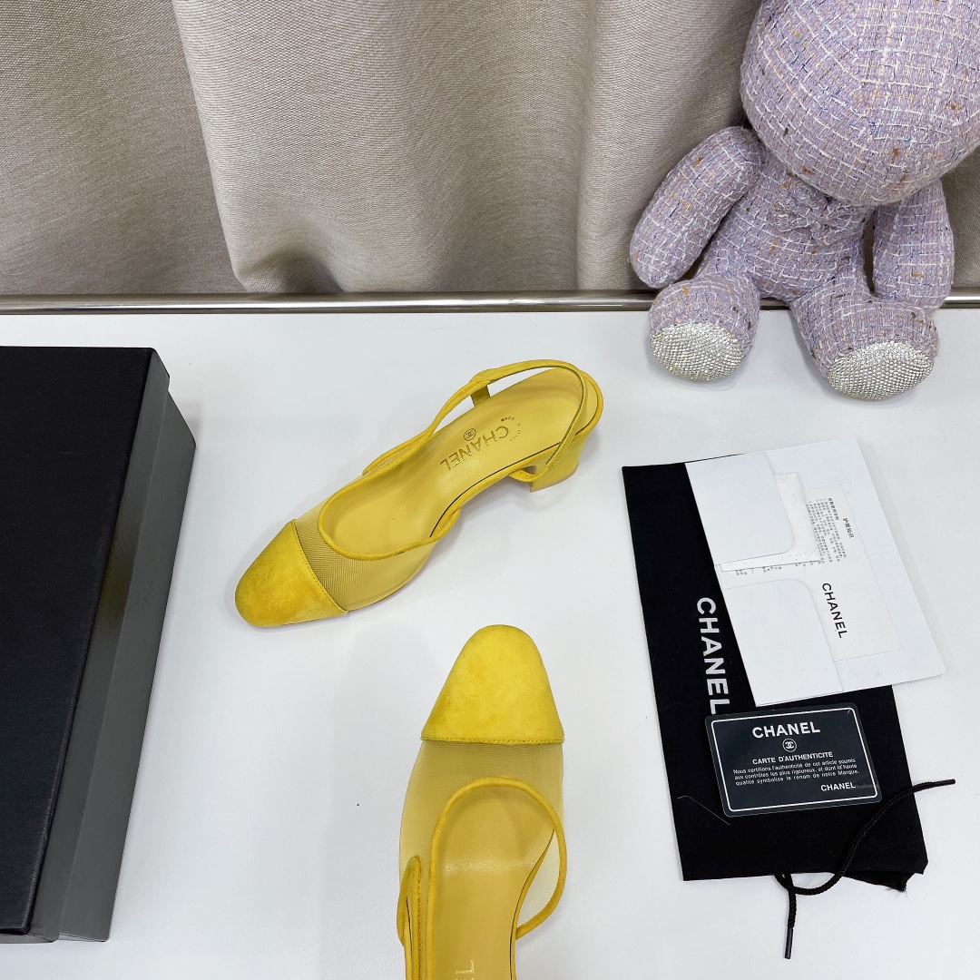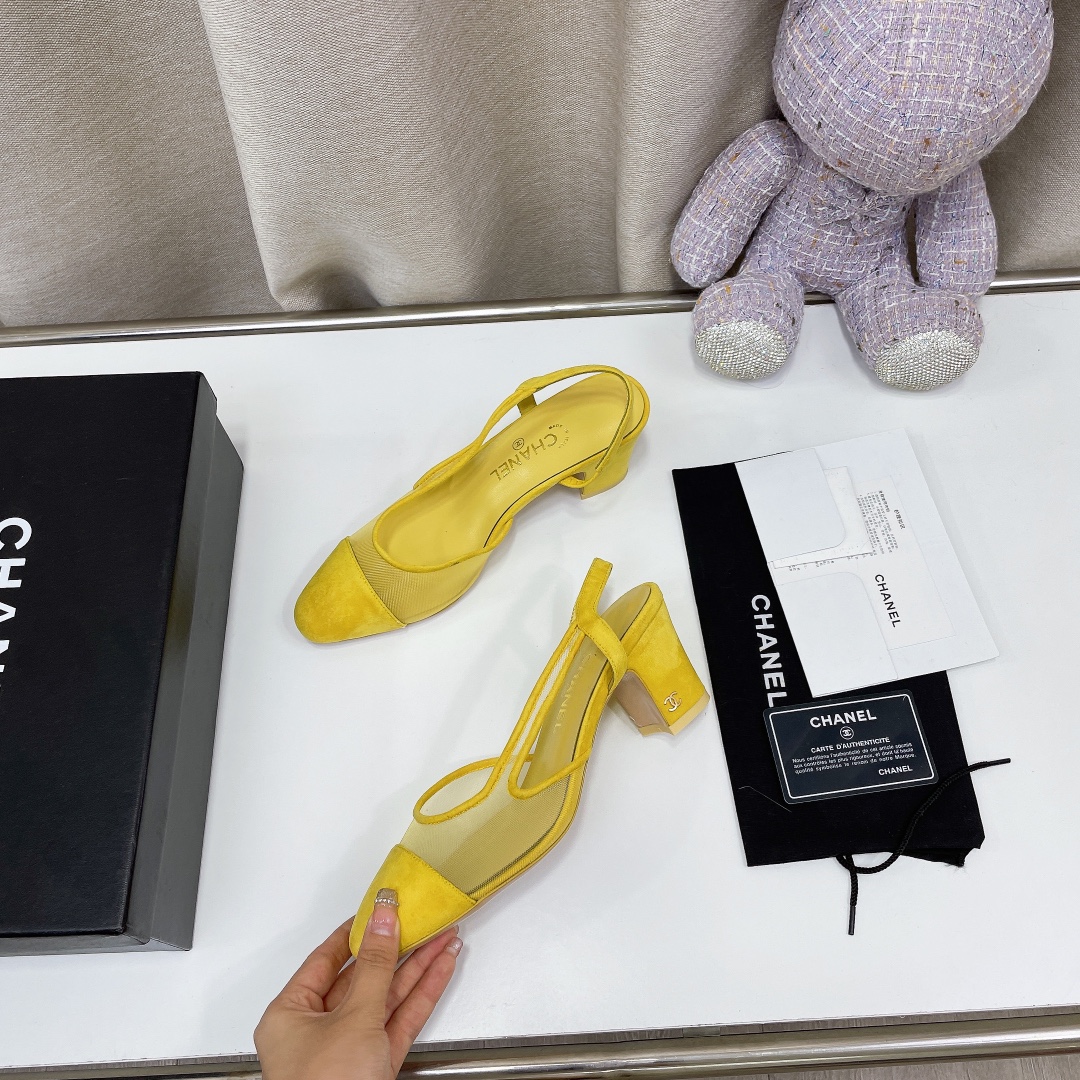 Chanel Chunky Heel High Heeled Rear Hollow Sandals Slipper Shoes