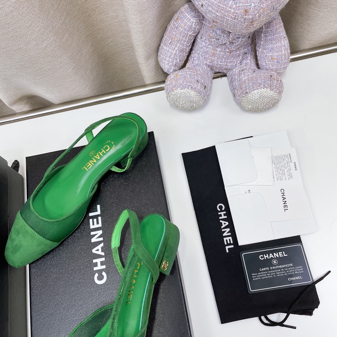 Chanel Chunky Heel High Heeled Rear Hollow Sandals Slipper Shoes