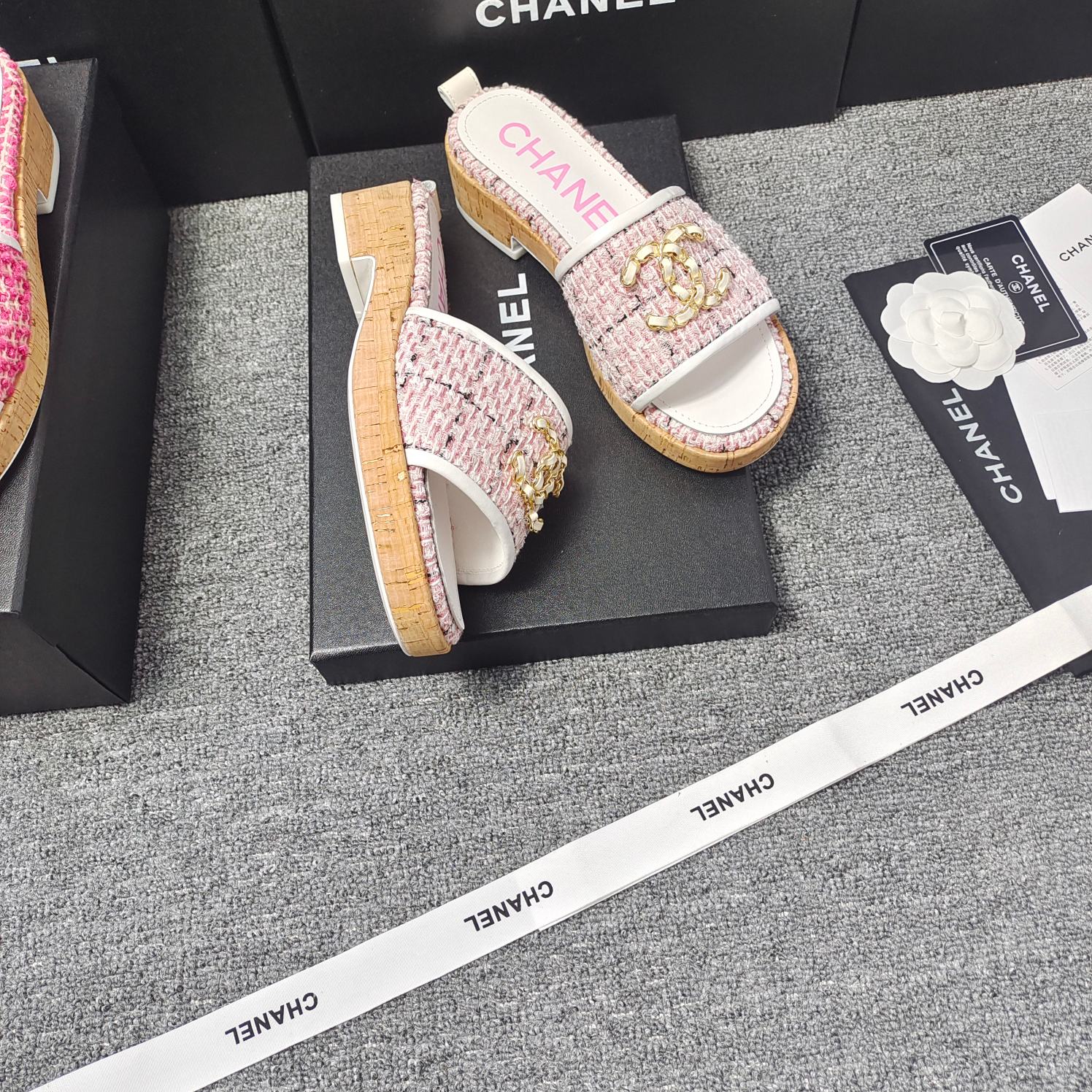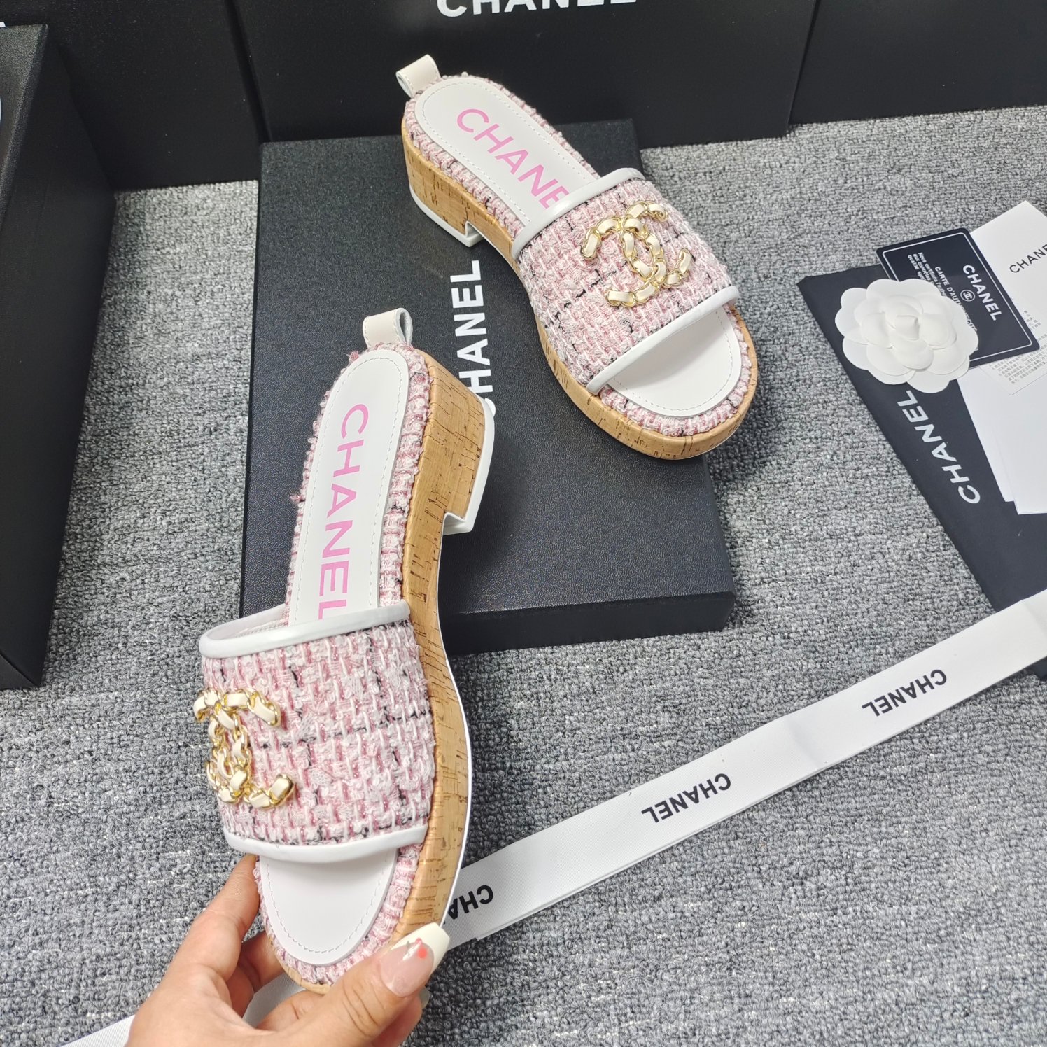 Chanel Chunky Chain Alphabet High Heels Sandals Slippers Shoes