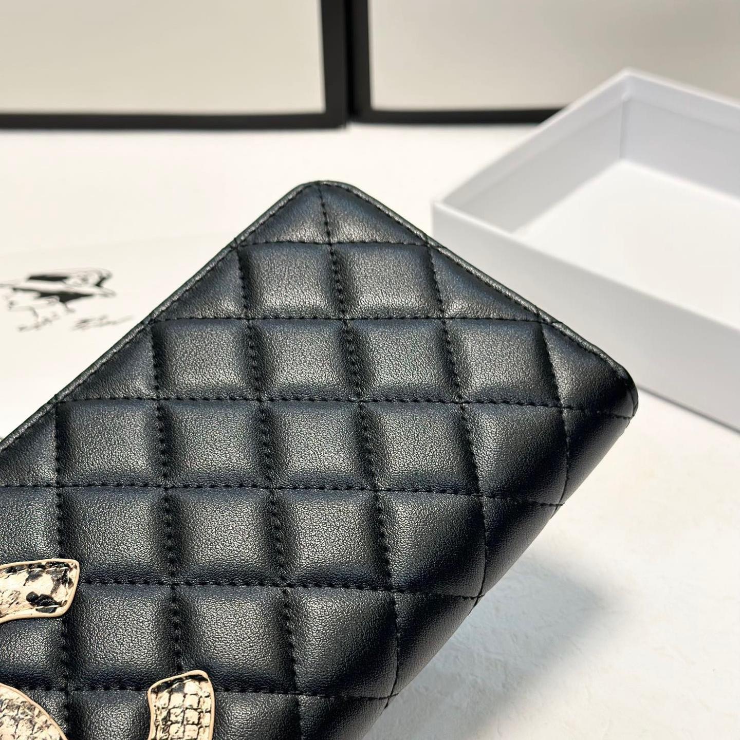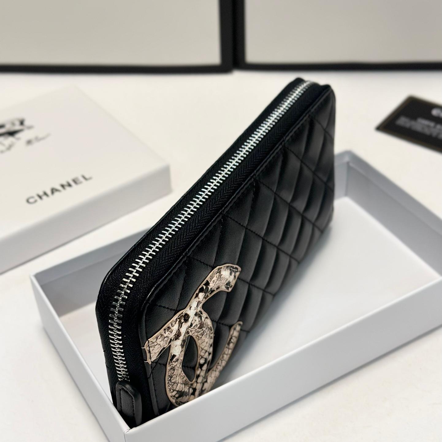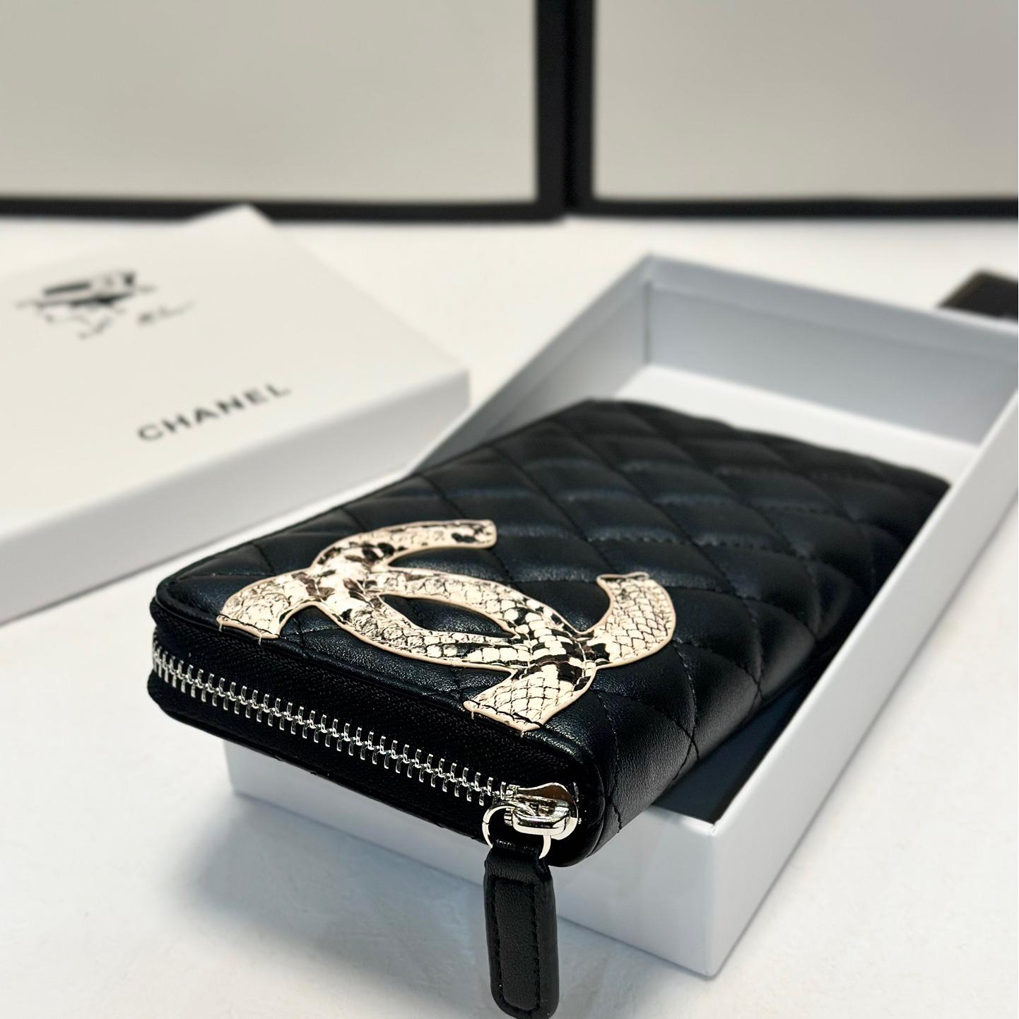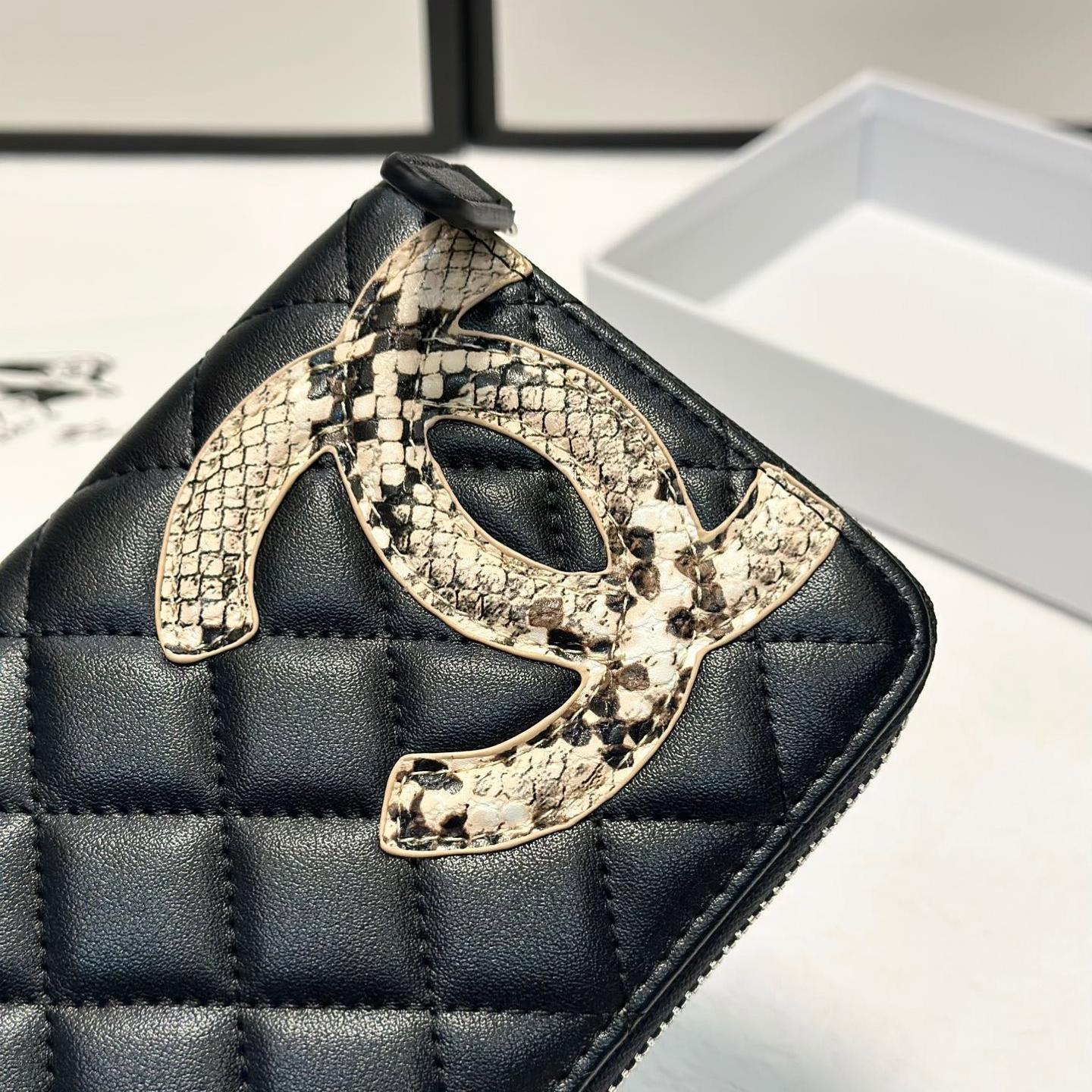 Chanel Snakeskin Logo Zip Long Wallet