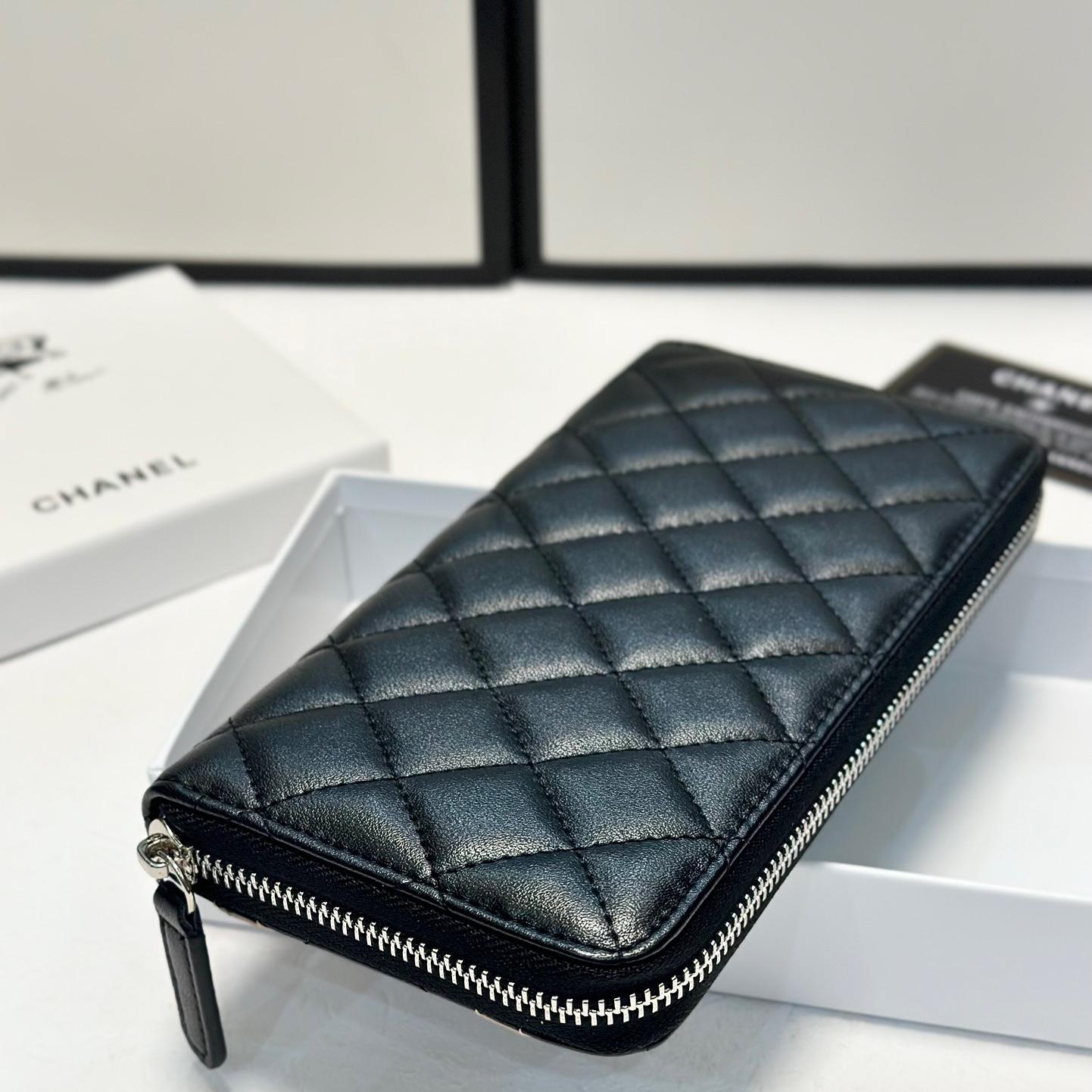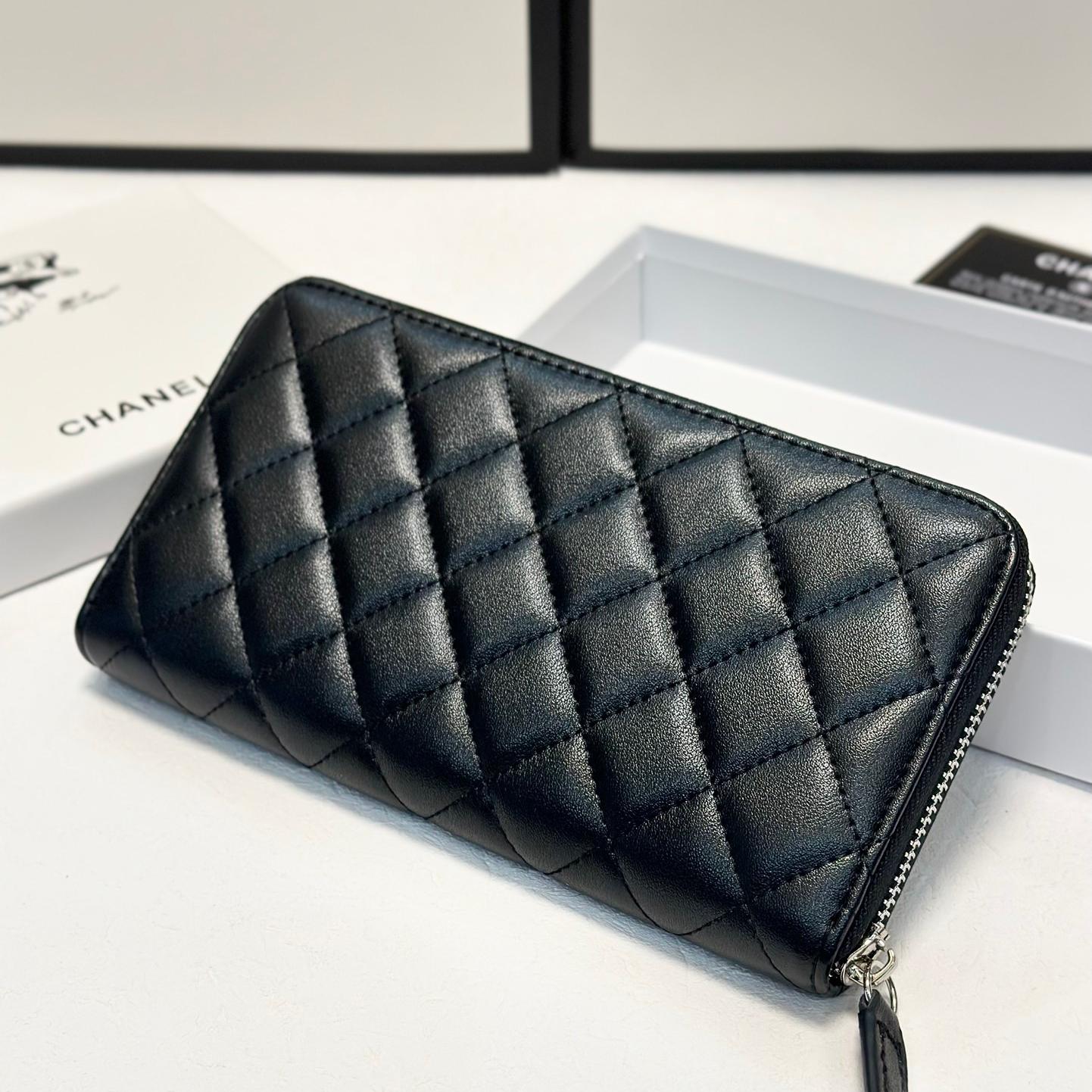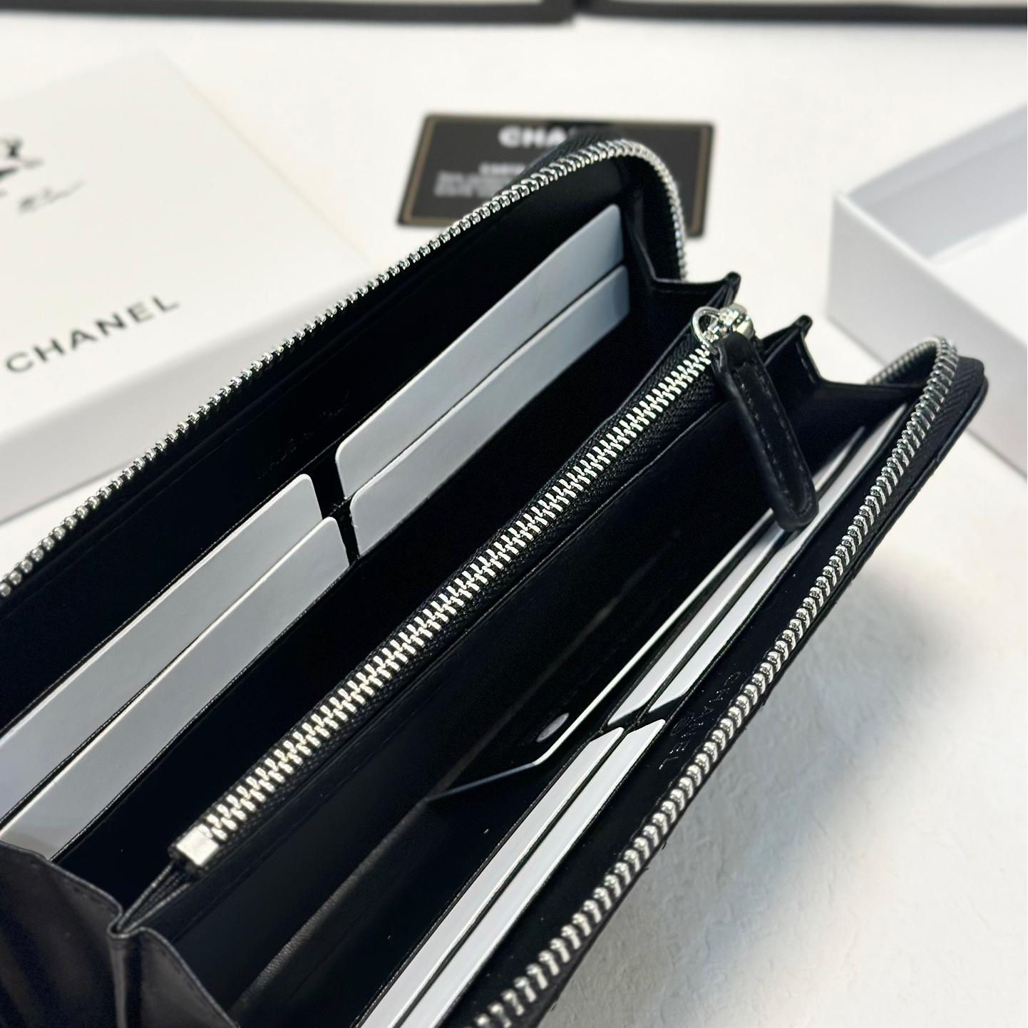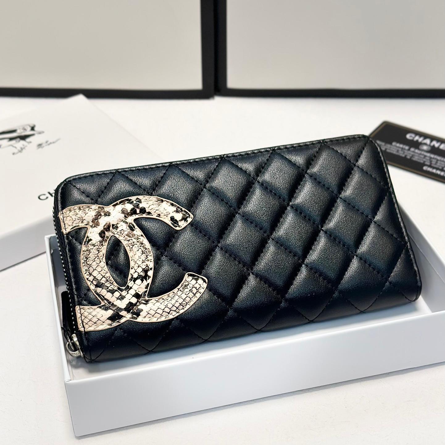 Chanel Snakeskin Logo Zip Long Wallet