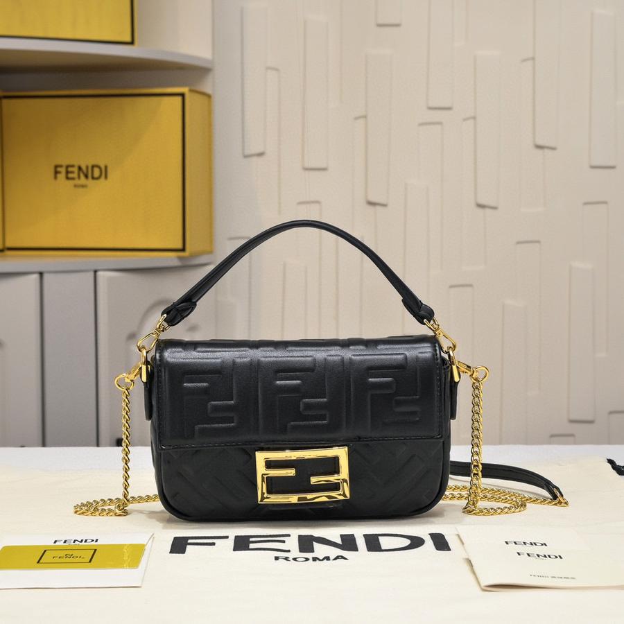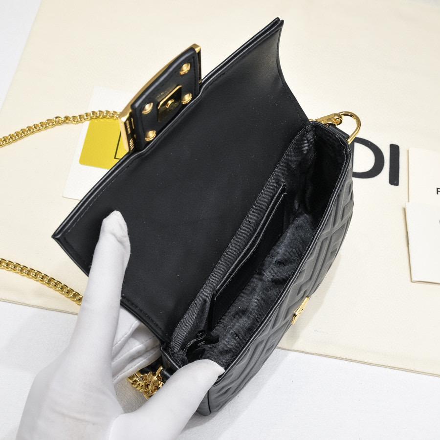 Fendi Baguette Mini Black nappa leather bag with FF motif Shoulder Crossbody Bag