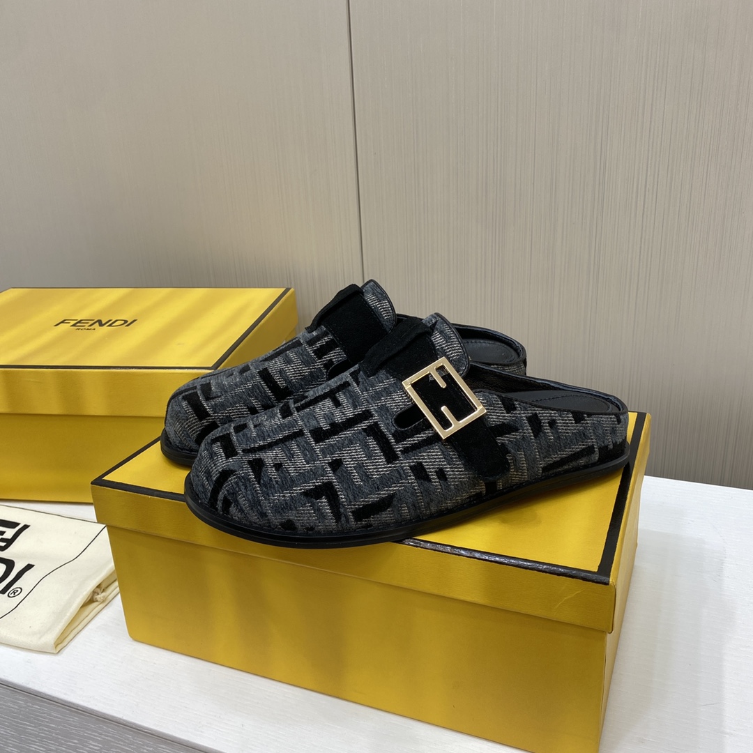 Fendi Old Flower Half Drag Strap FF Baguette Decorative Buckle Sandals Slipper