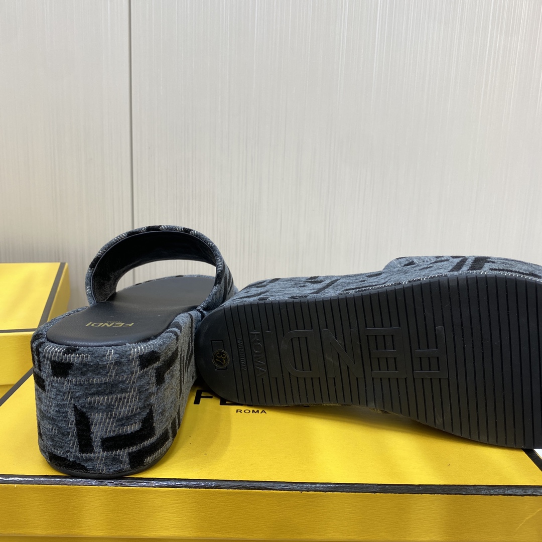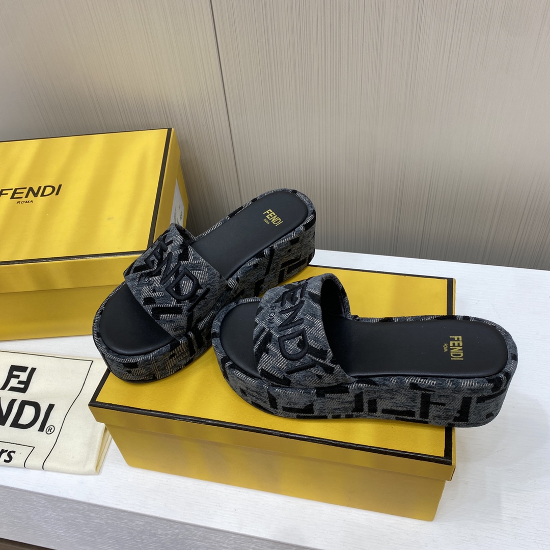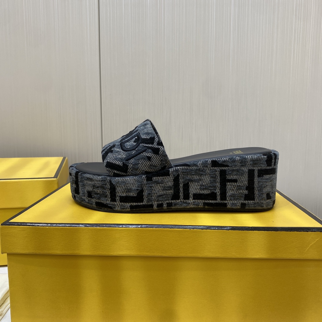 Fendi Sunshine FF Old Flower Slope Heel Thick Bottom Sandal Slippers