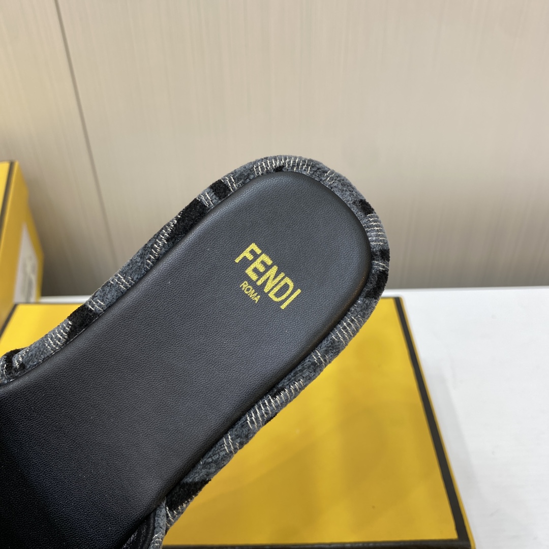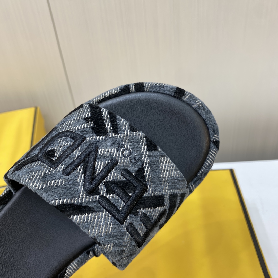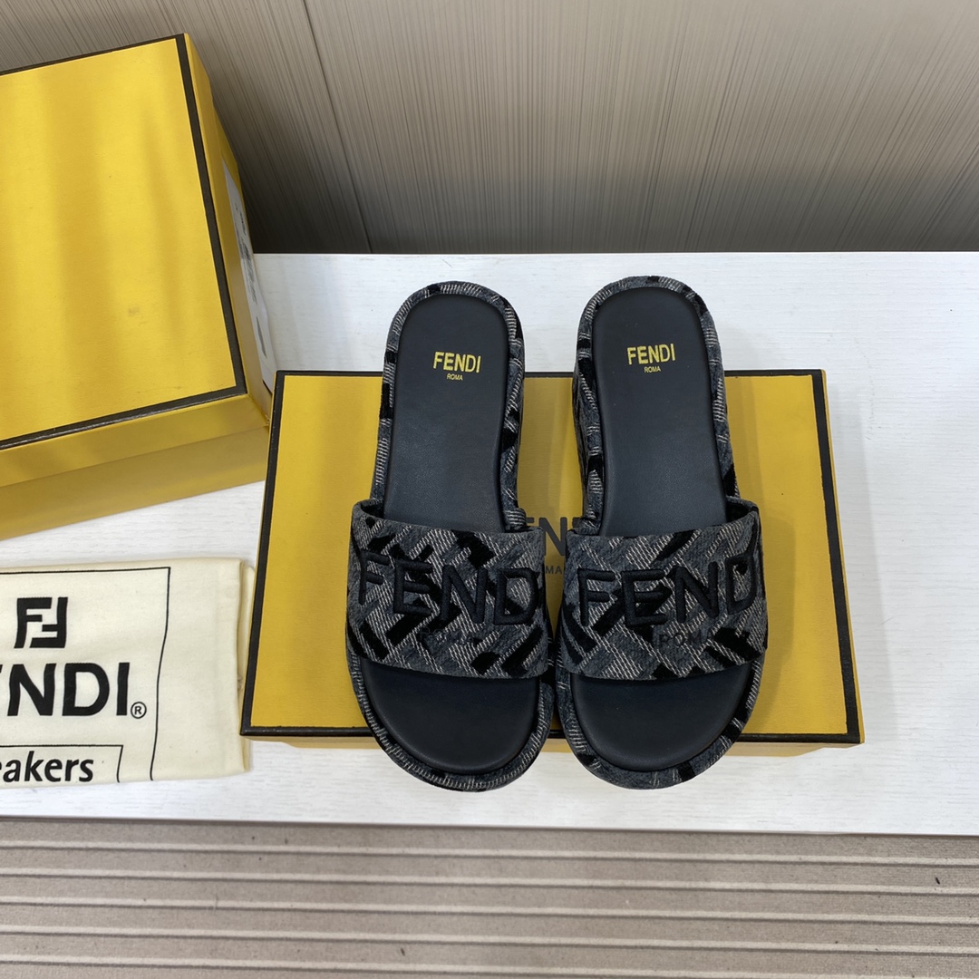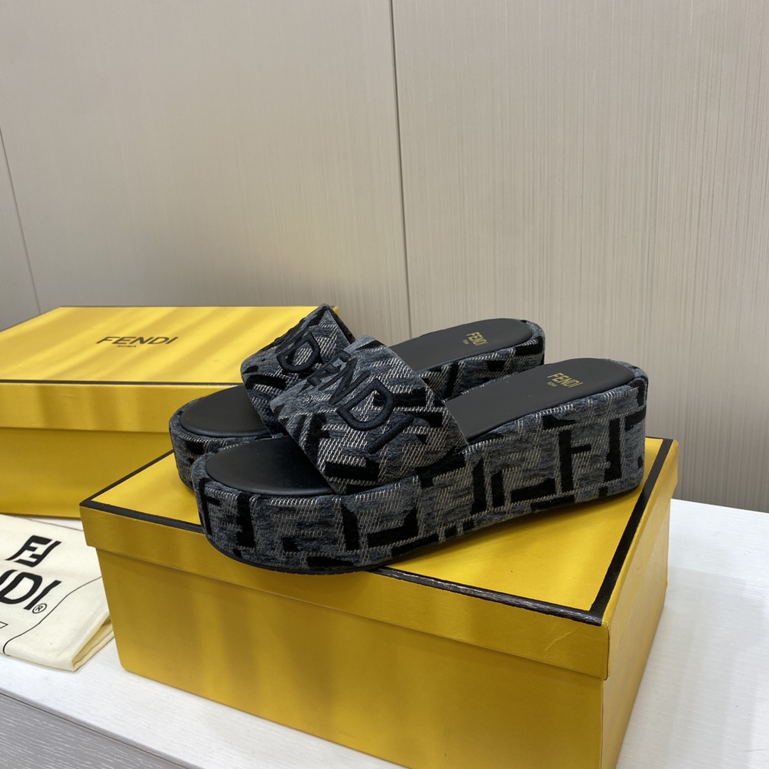 Fendi Sunshine FF Old Flower Slope Heel Thick Bottom Sandal Slippers