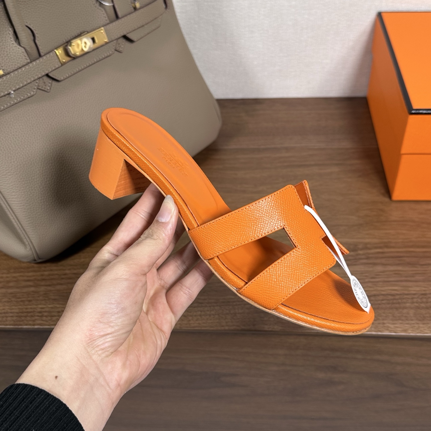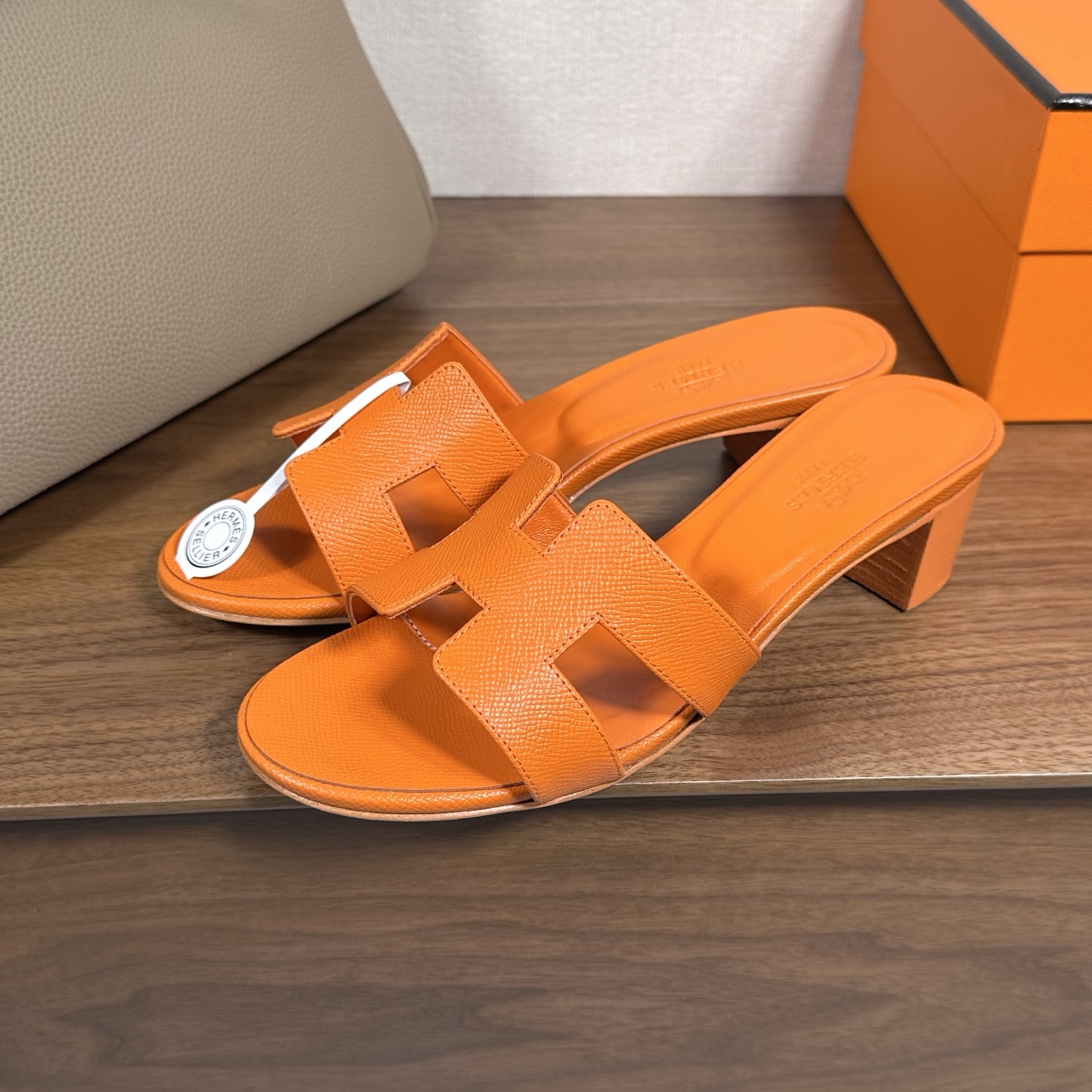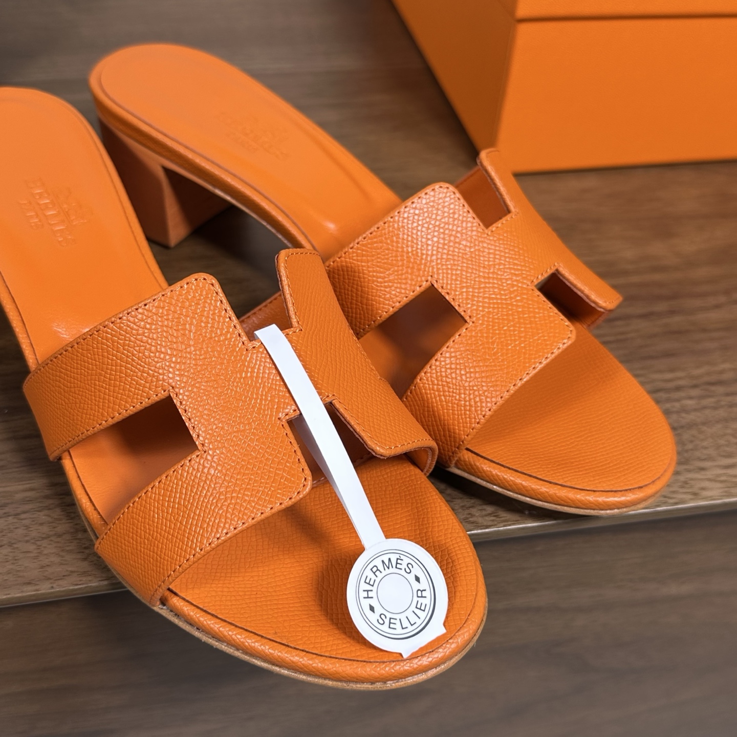 Hermes Oran H Square Heel High Heeled Sandals Slippers Shoes