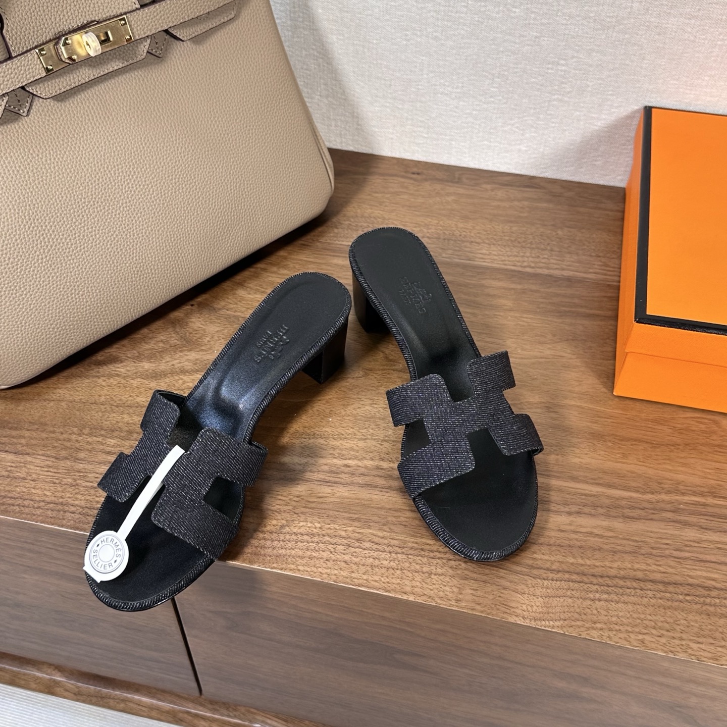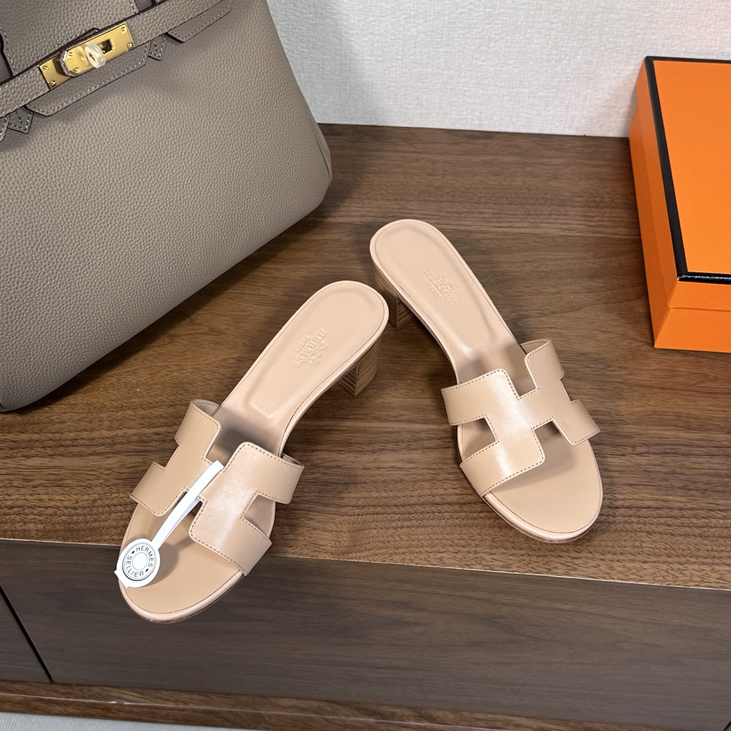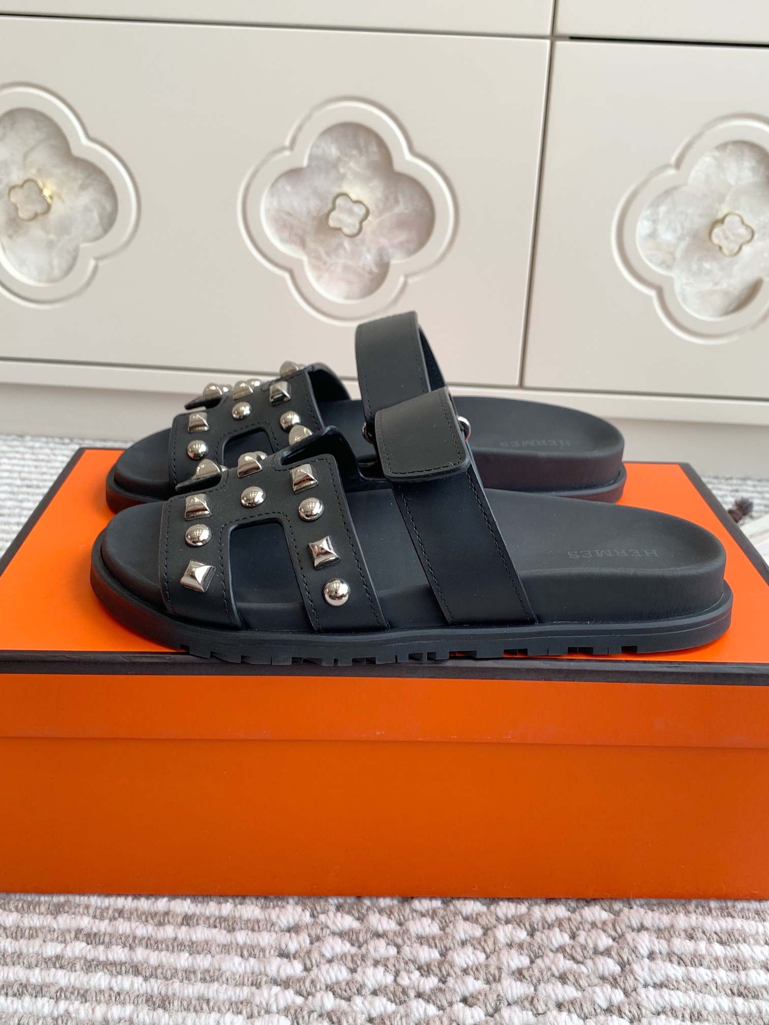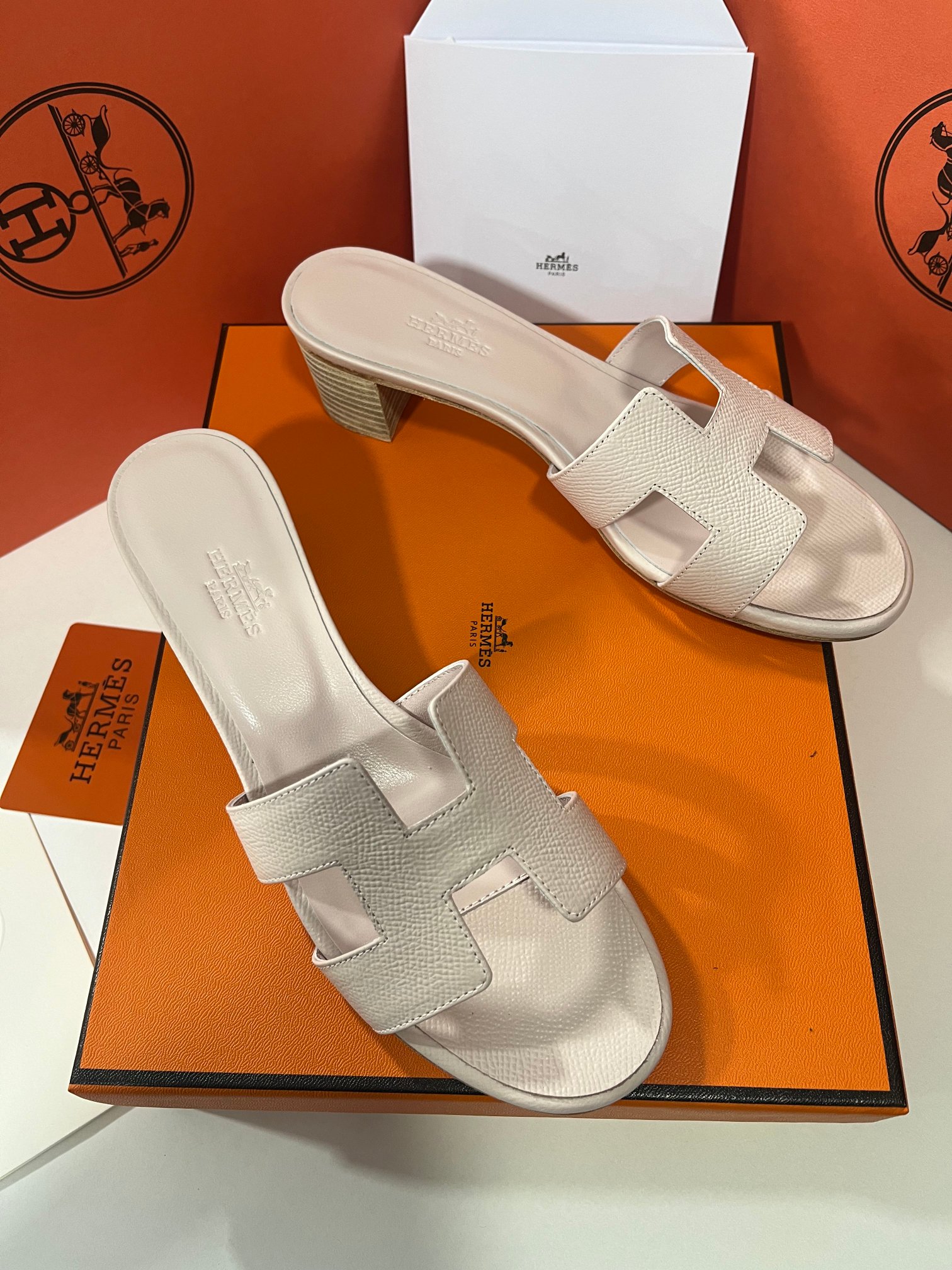 Hermes Palm epson leather H Sandals Slippers Chunky Heels