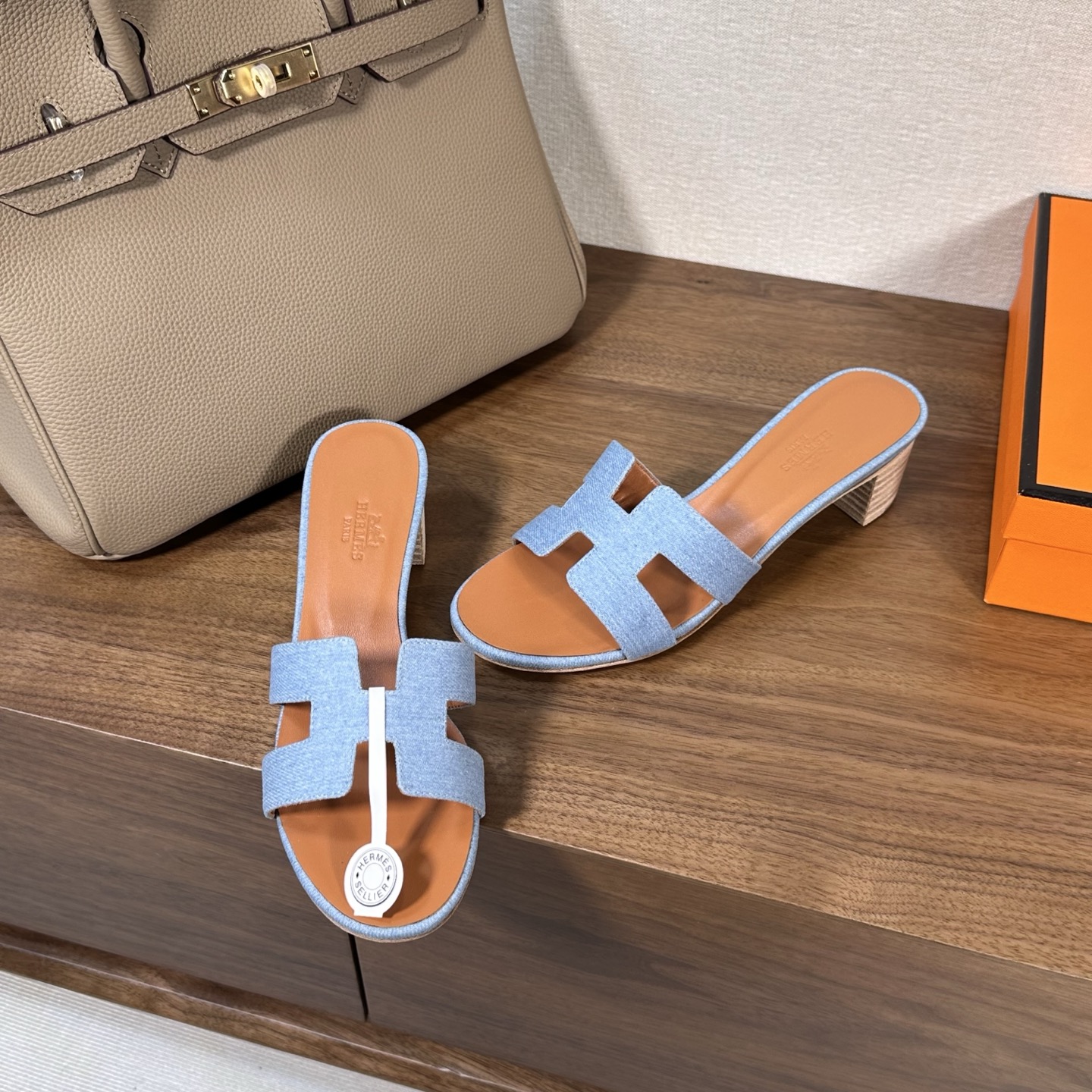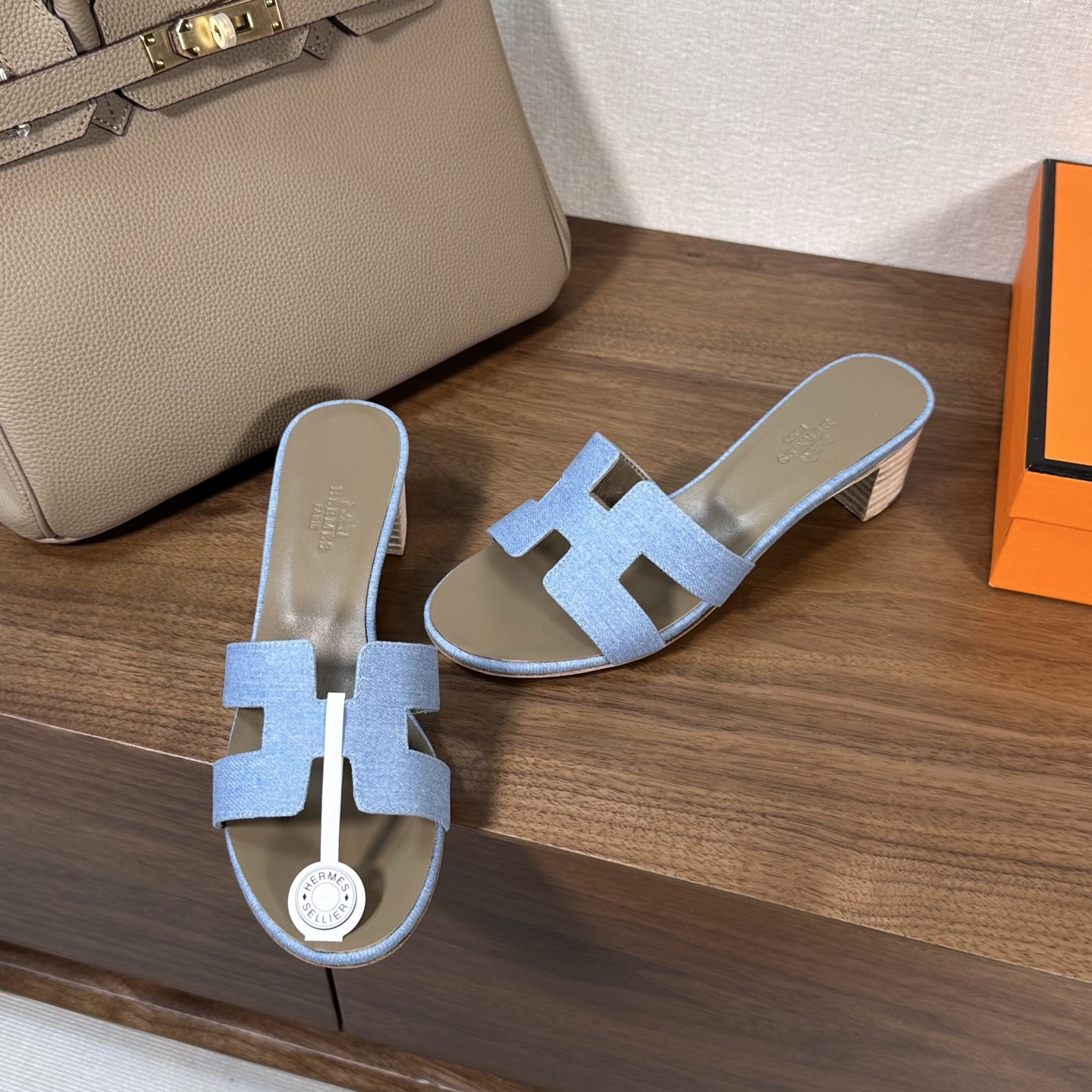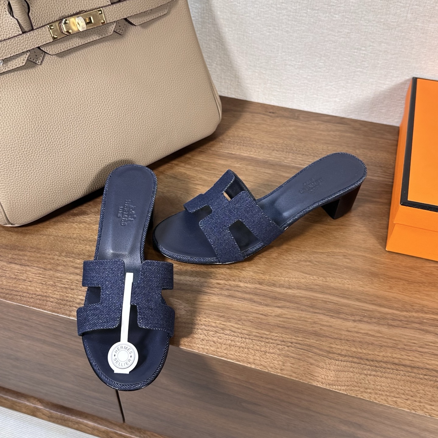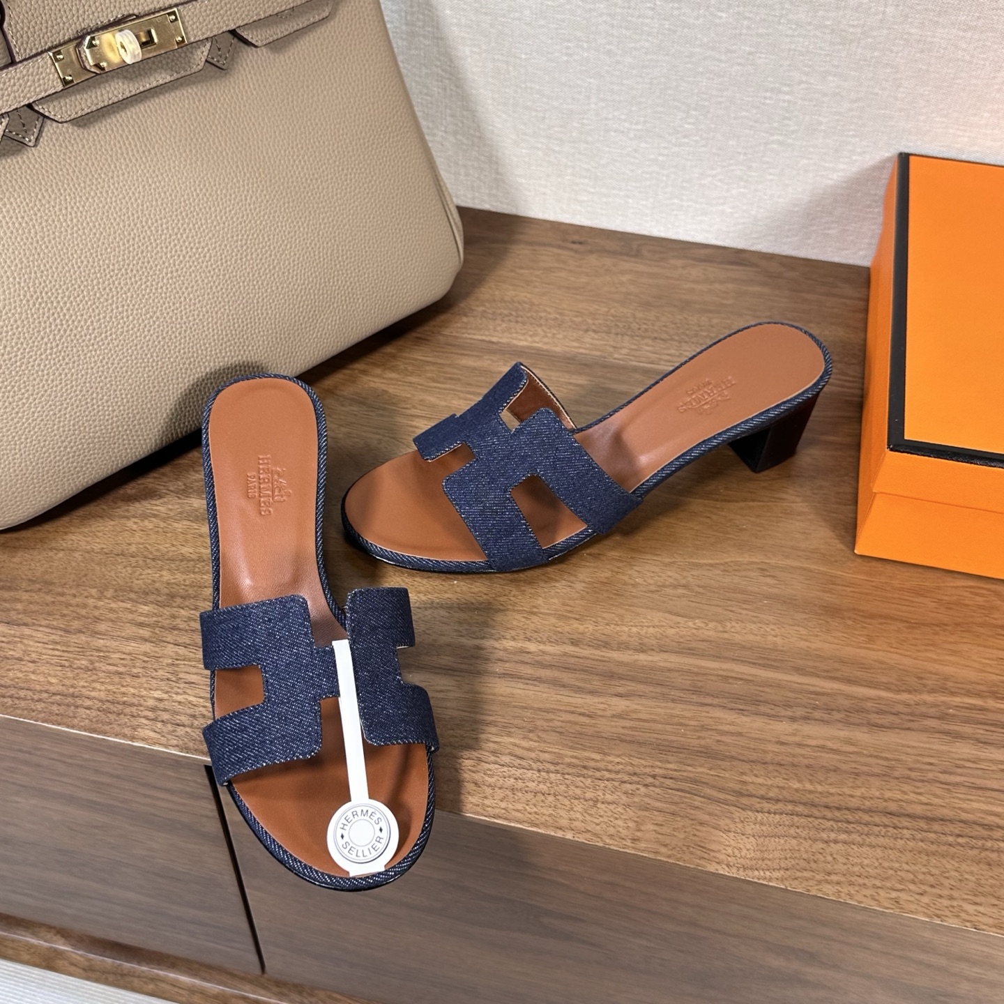 Hermes Palm epson leather H Sandals Slippers Chunky Heels