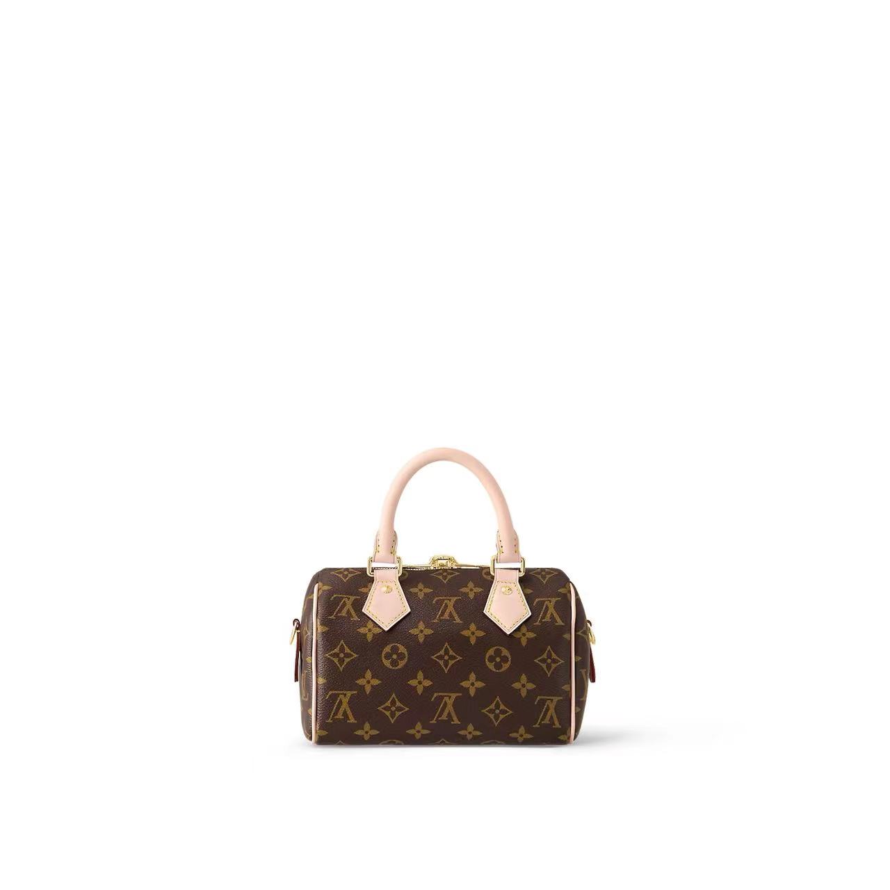 Like a diminutive version of the House historic Speedy travel bag, the Speedy Bandouliere 20 handbag is crafted from Monogram canvas with natural cowhide trim. In addition to the rolled leather top handles, there a wide detachable?and adjustable?textile strap with a woven L signature. This bag classic design is completed with red textile lining.