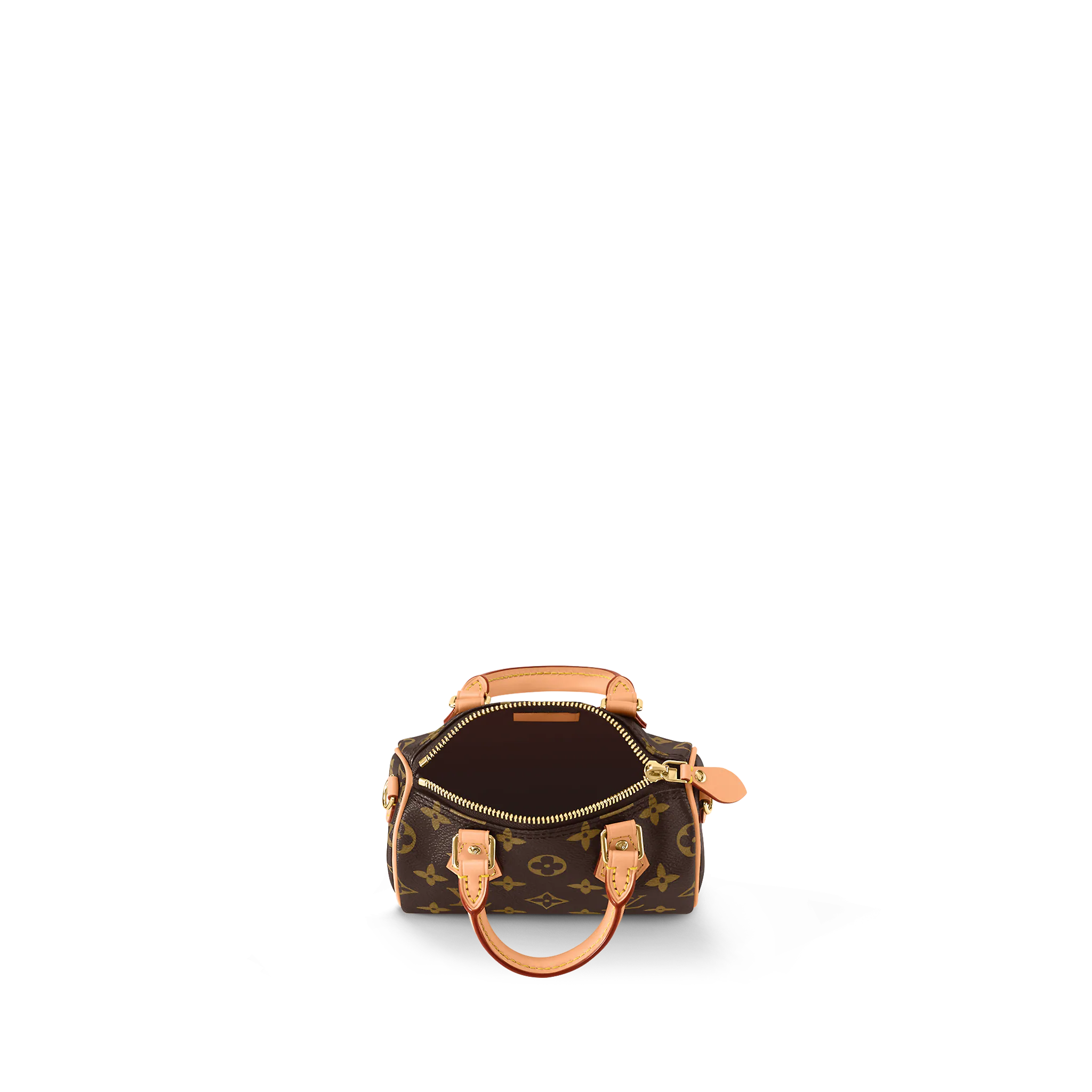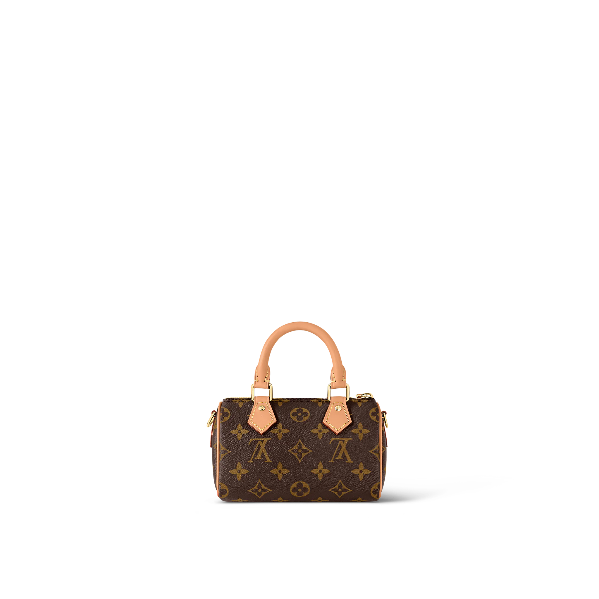 The Nano Speedy revamped in Monogram canvas is the perfect miniature version iconic Speedy bag, and the ideal way to carry essentials. This beautifully crafted design is complemented by aged natural cowhide leather and gold-tone hardware. In addition to its two handles, it has a removable, adjustable shoulder strap for different carry options.