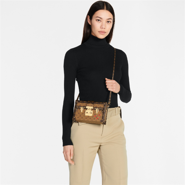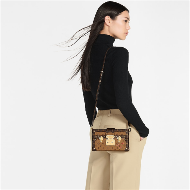 Every detail of the Petite Malle handbag is inspired by the history of trunks: the shape, the Monogram Reverse canvas, the gold-tone lock and fittings even the sheepskin lining reprises a classic House motif. Impeccably crafted, this fashionable little trunk travels easily from day to evening. It can be carried as a clutch or attached to the adjustable strap for cross-body wear.