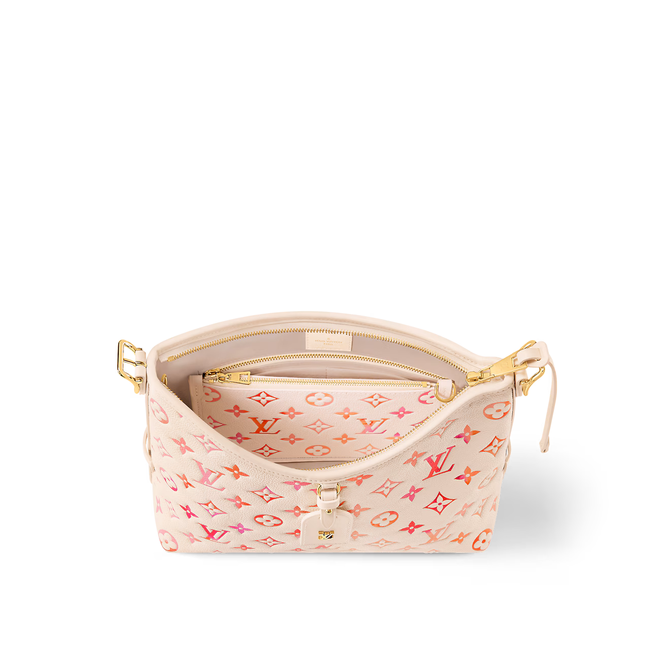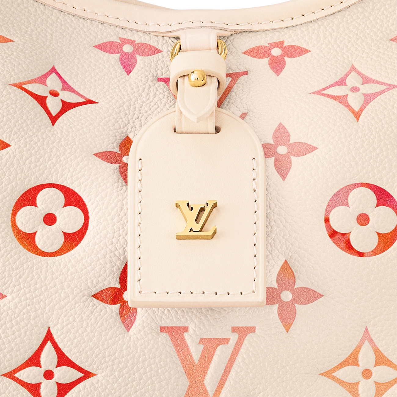 The CarryAll PM’s supple design is even more body-friendly in Monogram Empreinte leather. The sunrise colorway of the Monogram print – orange, pink and fuchsia – brings an optimistic feel; an effect amplified by the gradient “watercolor” aspect of the LVs and Monogram Flowers. A removable and adjustable strap enable comfortable shoulder carry.