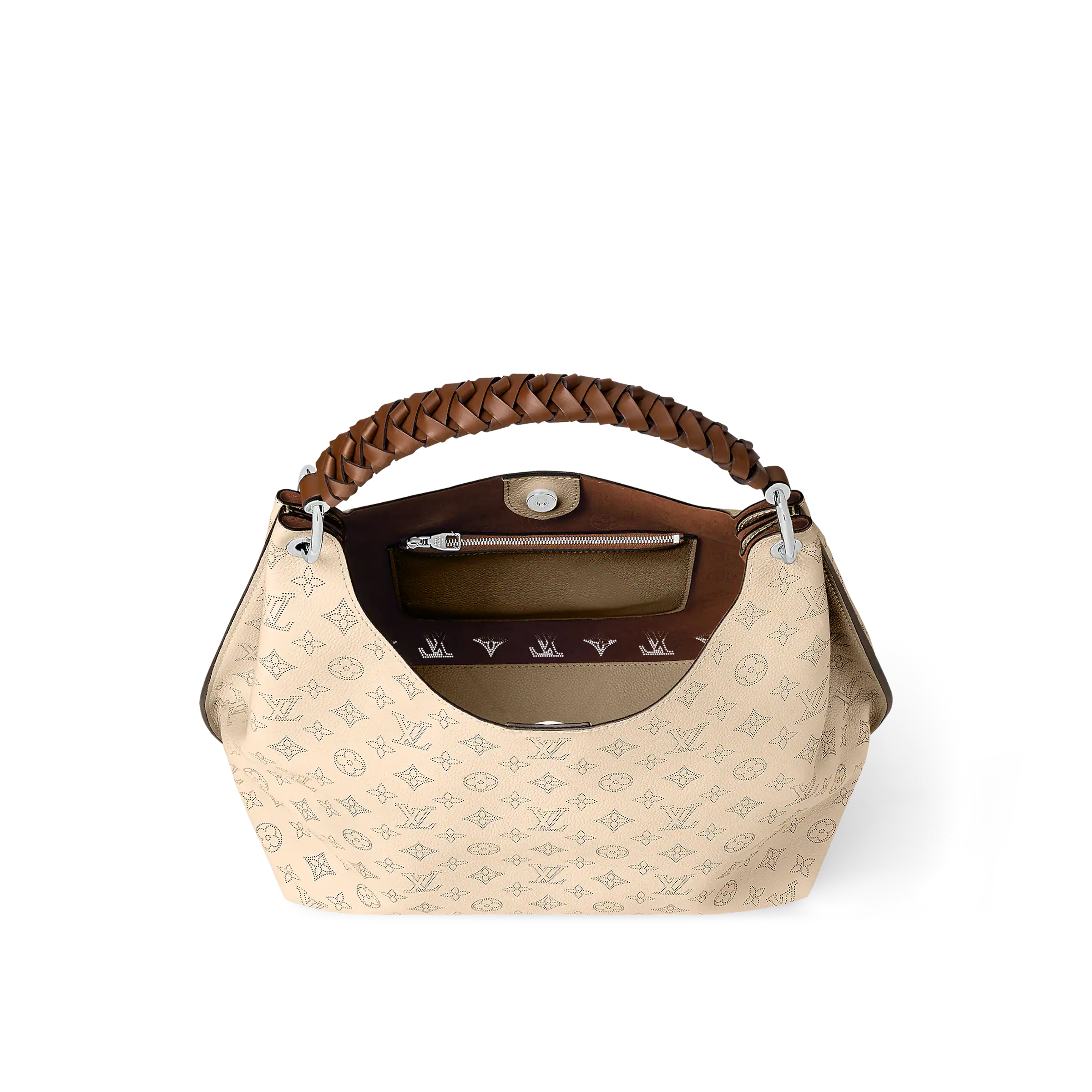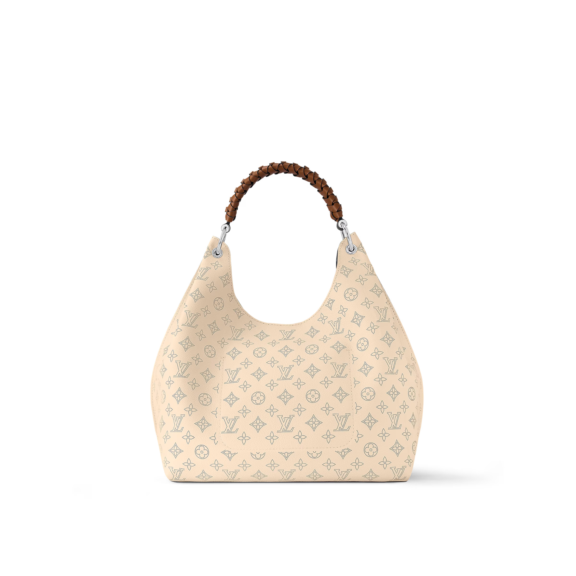 The Carmel hobo bag is a spacious, lightweight style in Mahina calf leather with Monogram perforations. The supple leather and the soft form of the bag combine to make it exceptionally pleasant to carry. Craft details such as the braided handle and leather charm add to the sophistication of this model.