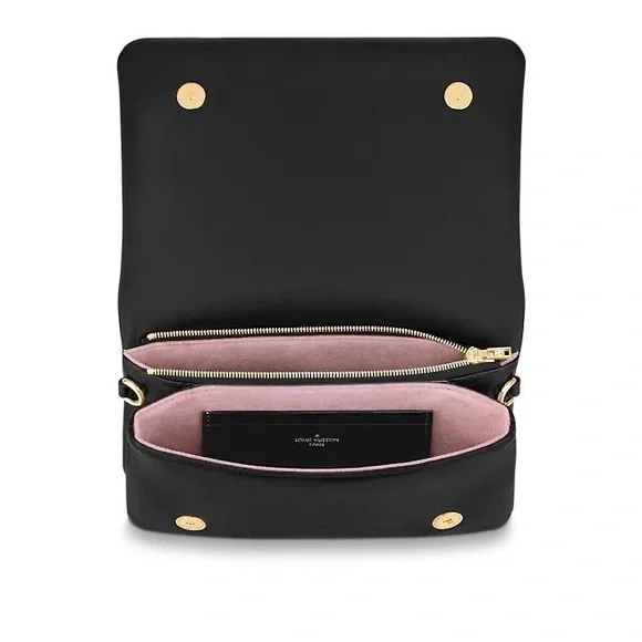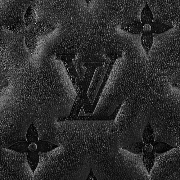 The Pochette Coussin is crafted from soft lambskin, which is embossed with the Monogram pattern to create a puffy, cushiony effect. This is further enhanced by the construction of the pouch, which gives it a supple, body-friendly shape. The removable chain, decorated with a L charm, offers different carry options: clutch, shoulder or belt.