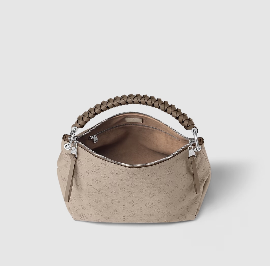 The Beaubourg Hobo MM bag is made from Mahina calf leather perforated with the Monogram pattern. It boasts a stylishly braided-leather top handle, with hand-painted edge-dyeing along the braids. The leather zip pulls and large LV charm sign the bag. A detachable, wide leather strap means that this supple bag feels comfortable against the body.