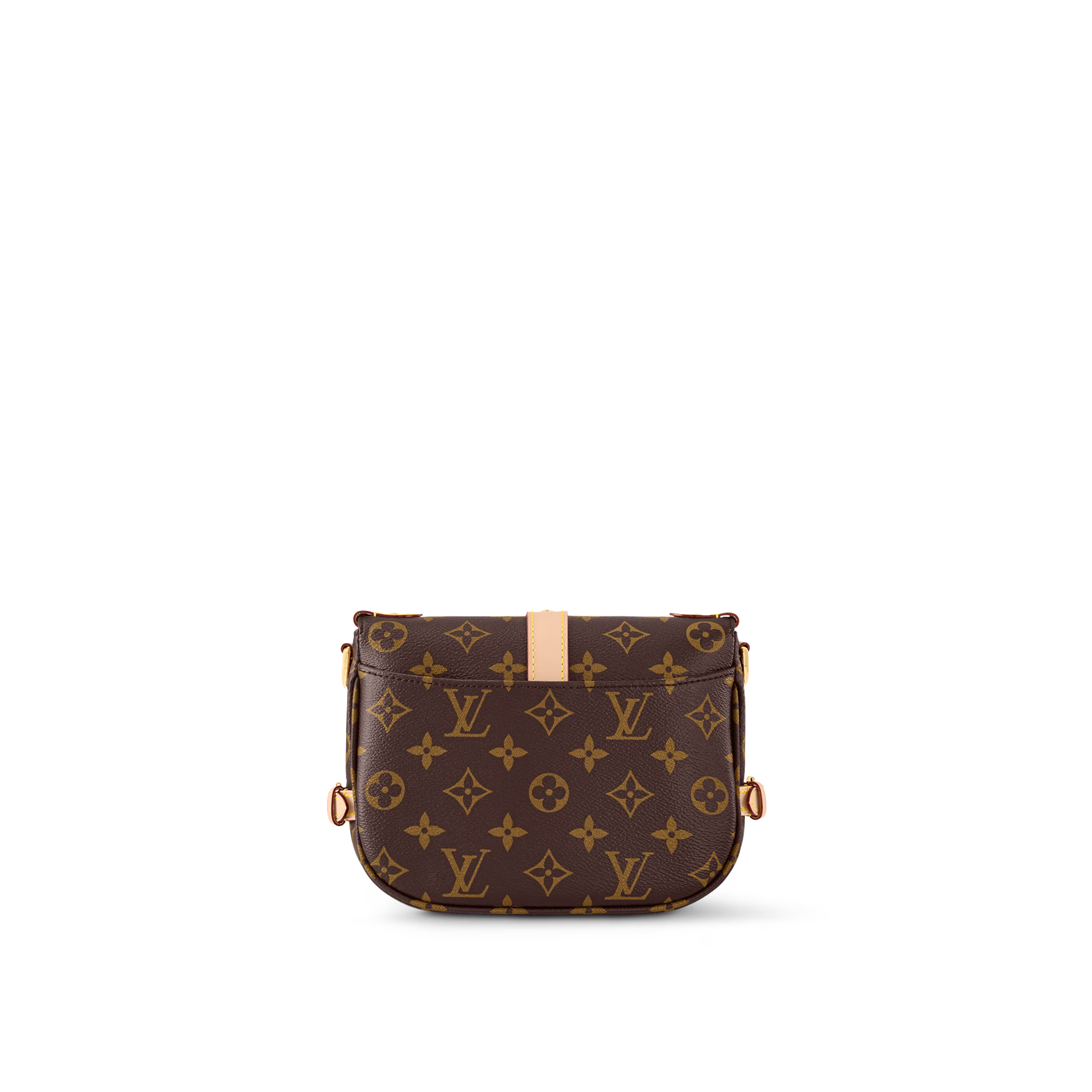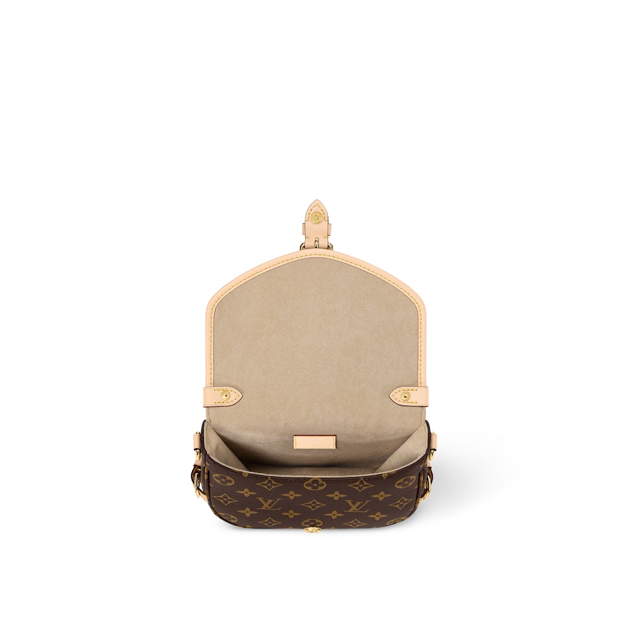 The Saumur BB handbag in Monogram canvas reimagines a beloved archival design in contemporary style. The saddle-bag shape and natural cowhide-leather buckles evoke an equestrian spirit, but the front buckle conceals a magnetic closure: a convenient modern touch. With room inside for a days essentials, this compact bag is versatile too, thanks to the detachable strap and handle.