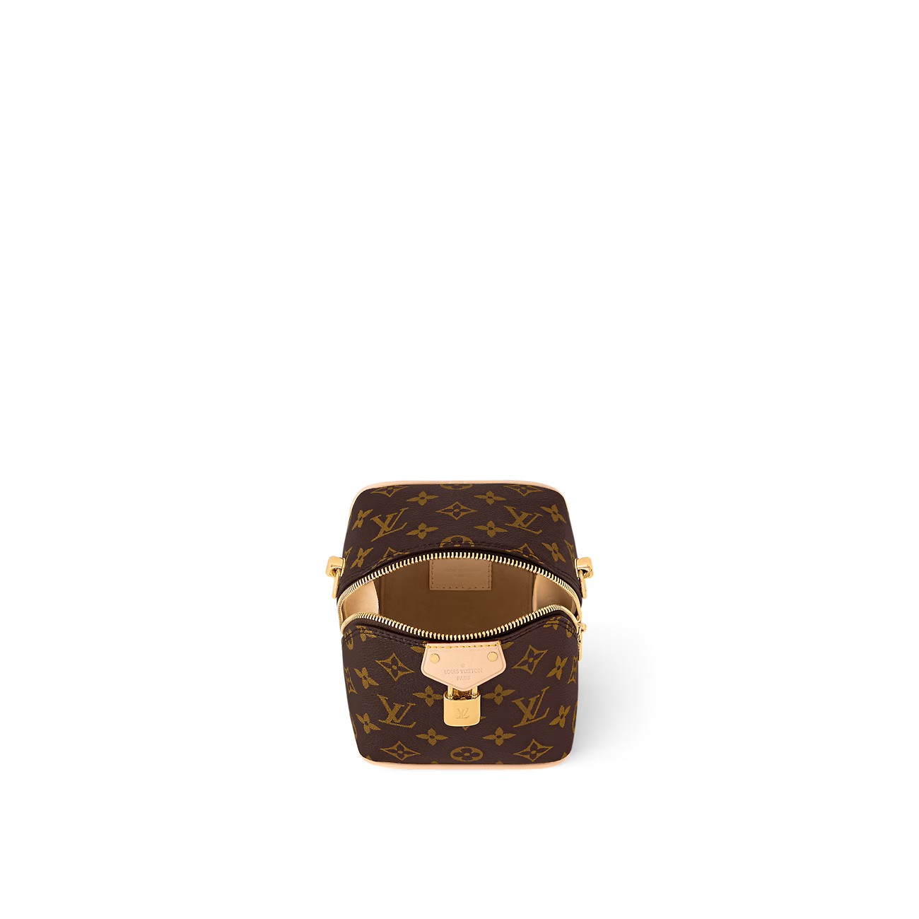 The Maison salutes its travel heritage with the Just In Case handbag. Made from Monogram canvas with natural cowhide-leather trim, this compact model keeps essentials – smartphone, keys, makeup – always close at hand. Detailed with a signature padlock and key bell, the bag is fitted with a leather-braided chain and a leather strap, both removable, for a variety of modern carry options.