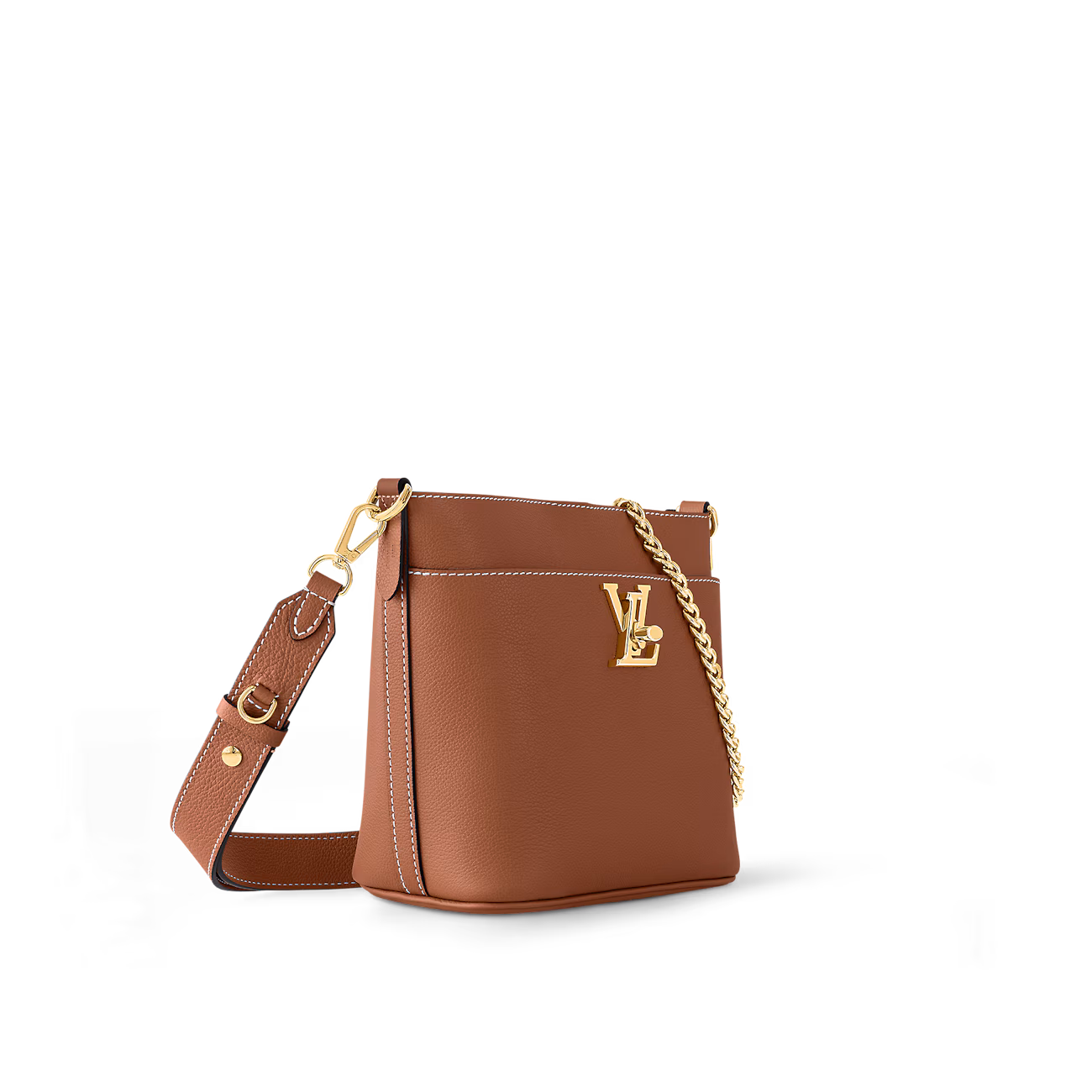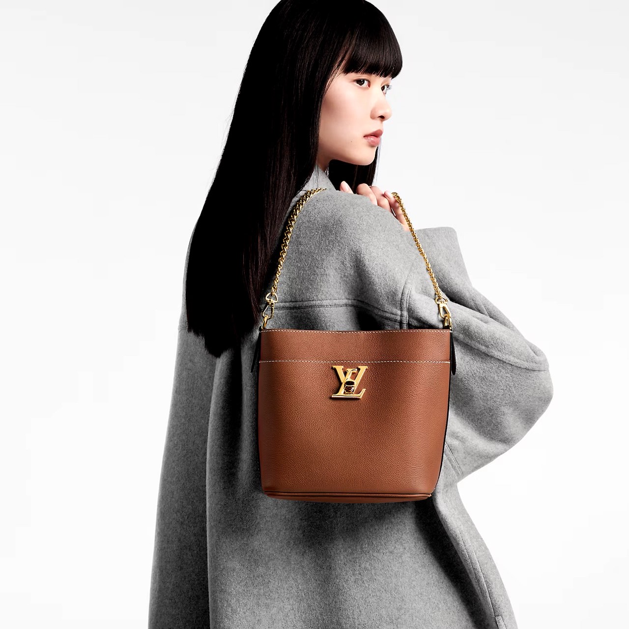 The Lock and Walk is a sleek bucket bag fashioned from grained calf leather. Lightweight and comfortable to carry, the bag combines casual ease with Parisian chic. A large front compartment secured with the LV turn lock provides convenient access to essential belongings. The detachable smart strap and golden chain handle provide for different carry styles.