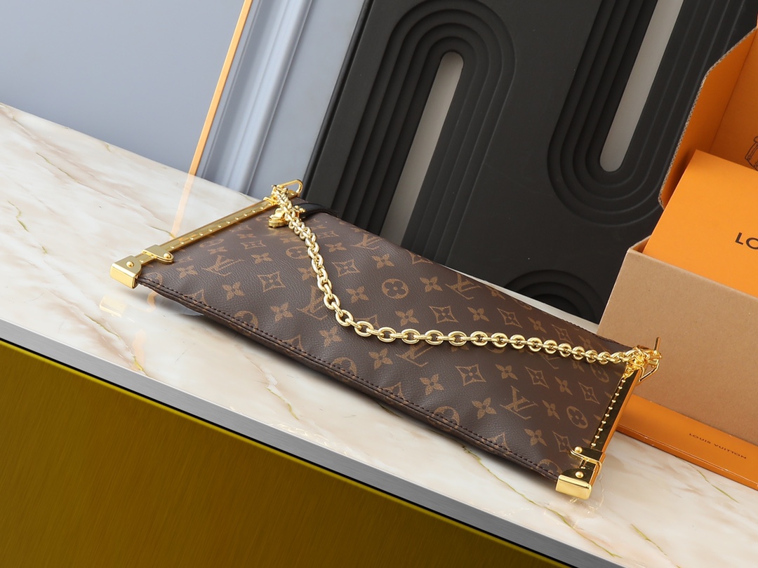 The Lucky Trunk bag graced the Fall/Winter 2024 runway, showcasing its vibrant design. Crafted from classic Monogram canvas, it features a metal frame and a gleaming lock. Its unique shape allows for elegant hand or shoulder carry.