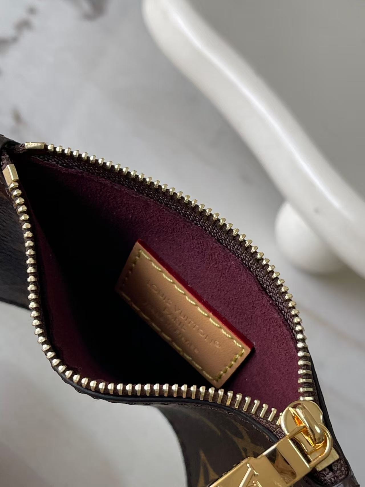 LV Monogram canvas is accented with gleaming hardware, and the iconic padlock and nameplate create a timeless design. The adjustable shoulder strap, inspired by the brand's trunk-making heritage, features a leather strap for crossbody and shoulder carry options. The foldable design allows for flexible storage and creates ample space for everyday wear.