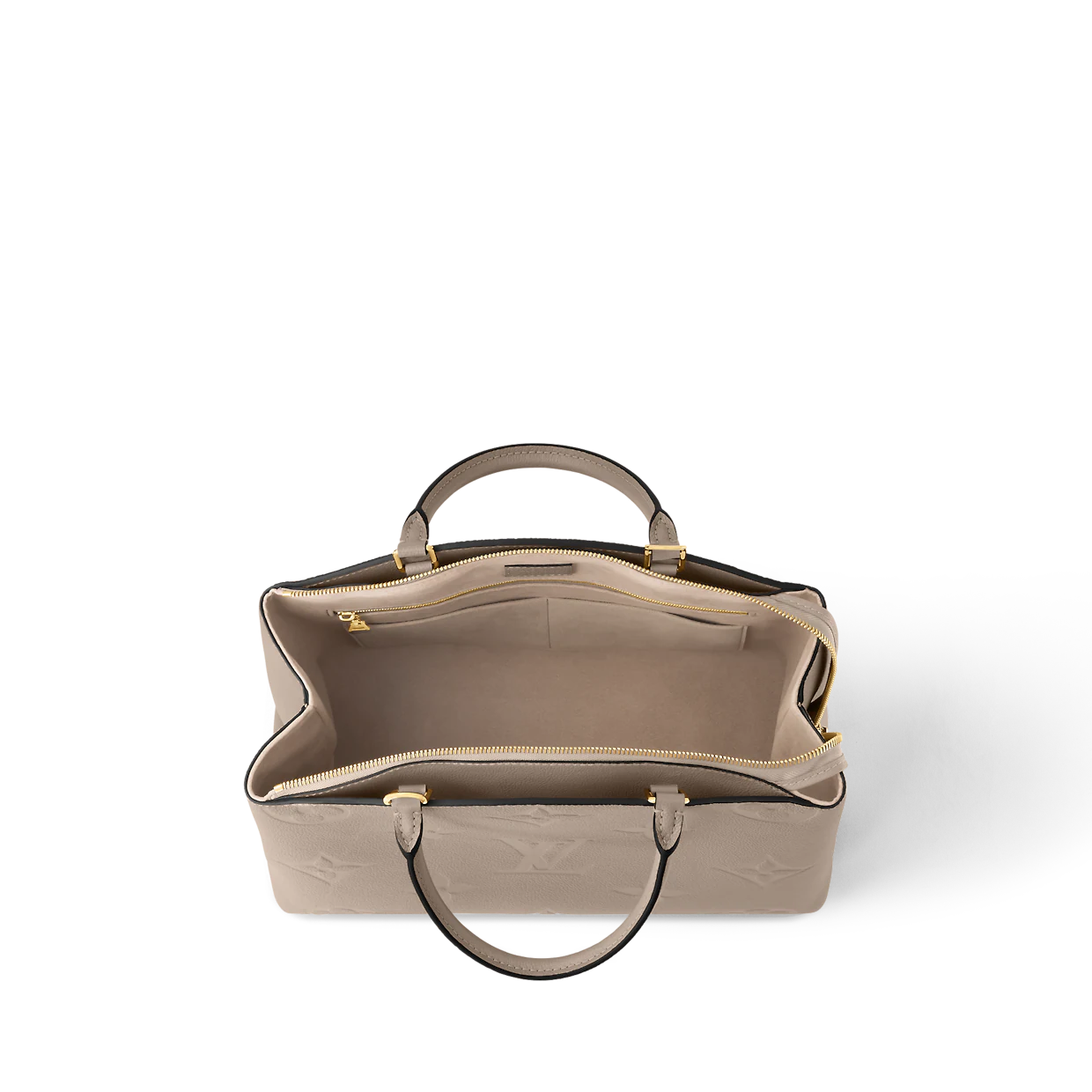 Both chic and impeccably functional, the Grand Palais tote bag is made from soft-grained leather, embossed with an oversized Monogram pattern. Its name tag and gold-color padlock evoke the House travel heritage. An ideal day-to-business bag, its well-organized interior includes multiple pockets and compartments. It offers several carries: hand, elbow and cross-body thanks to its ajustable and removable strap.