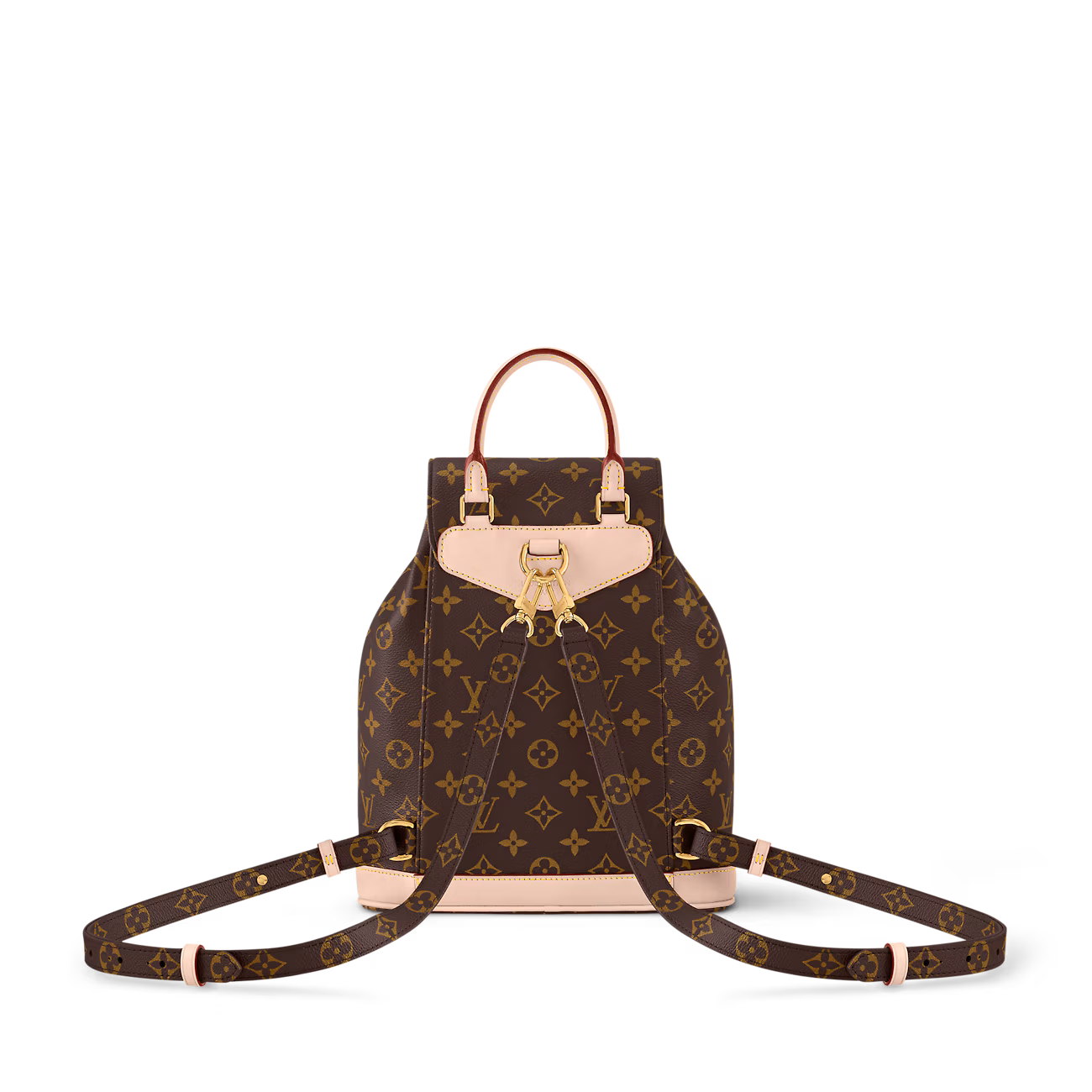 Inspired by the House’s Montsouris bag from 1994, the practical and stylish Montsouris PM backpack by Nicolas Ghesquière is made from Monogram coated canvas, with cowhide-leather trim. The leather top handle and two adjustable leather straps give carry options while the tasteful drawstring and magnetic closure bring security.