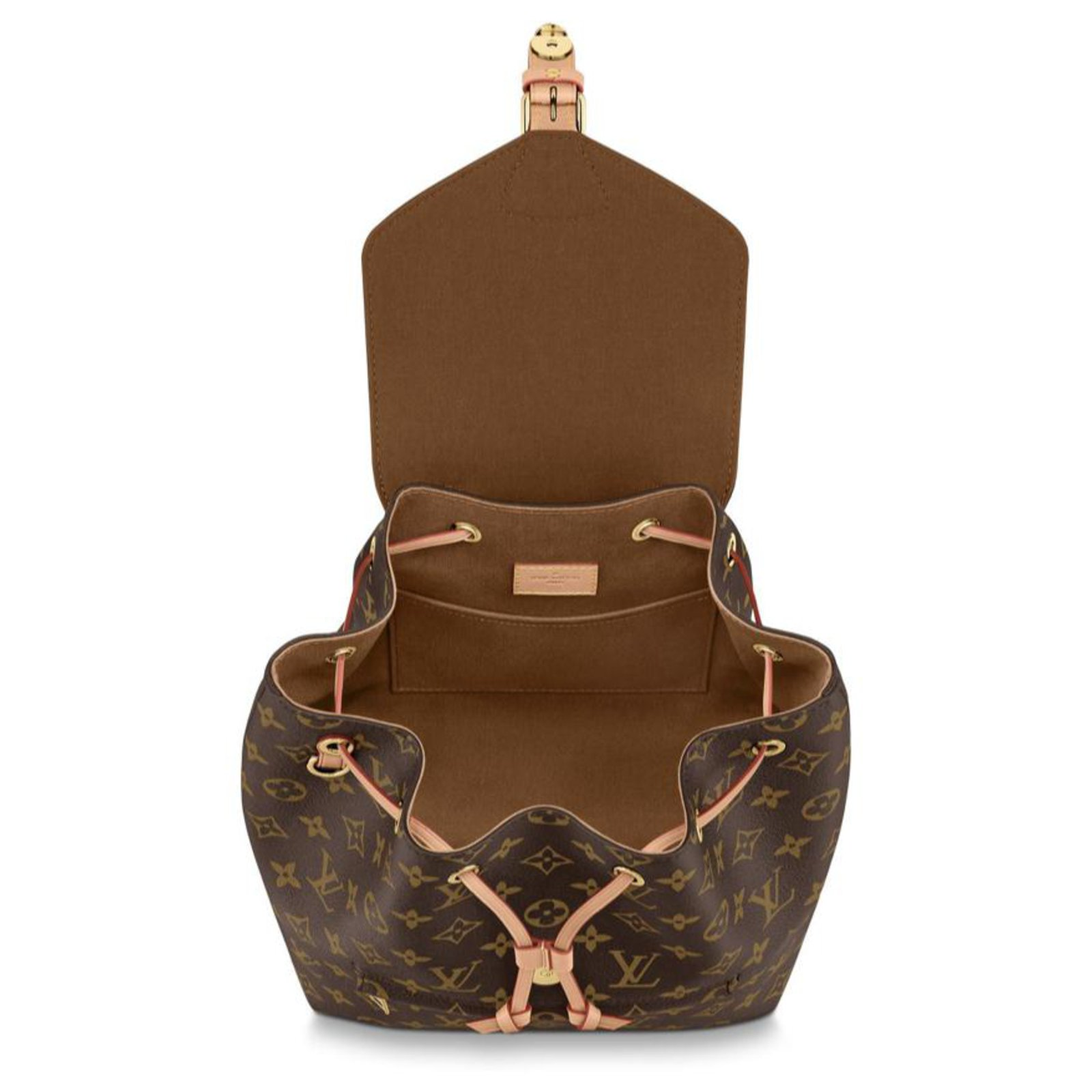 The Montsouris PM is an elegant new backpack made from Monogram canvas and cowhide leather. It closes with an archive Louis Vuitton buckle and leather drawstrings. Practical, with a roomy interior, it features an outside zipped pocket. The top handle and adjustable leather straps allow multiple carry options.