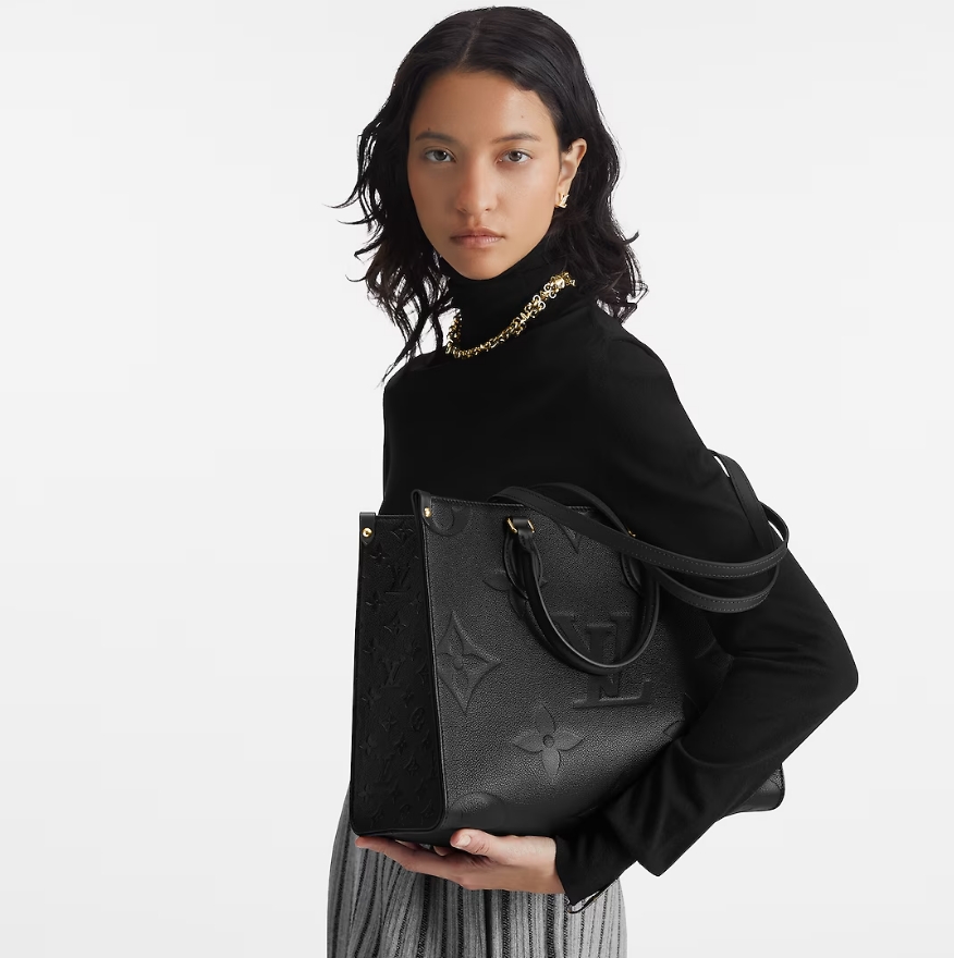 For Spring 2021, L launches the Onthego MM tote bag in grained Monogram Empreinte, a soft leather that is embossed with a large and modern Monogram pattern. Thanks to the square shape, it boasts a generous capacity and can easily fit a laptop. Its articulated top handles and shoulder straps give carrying options.