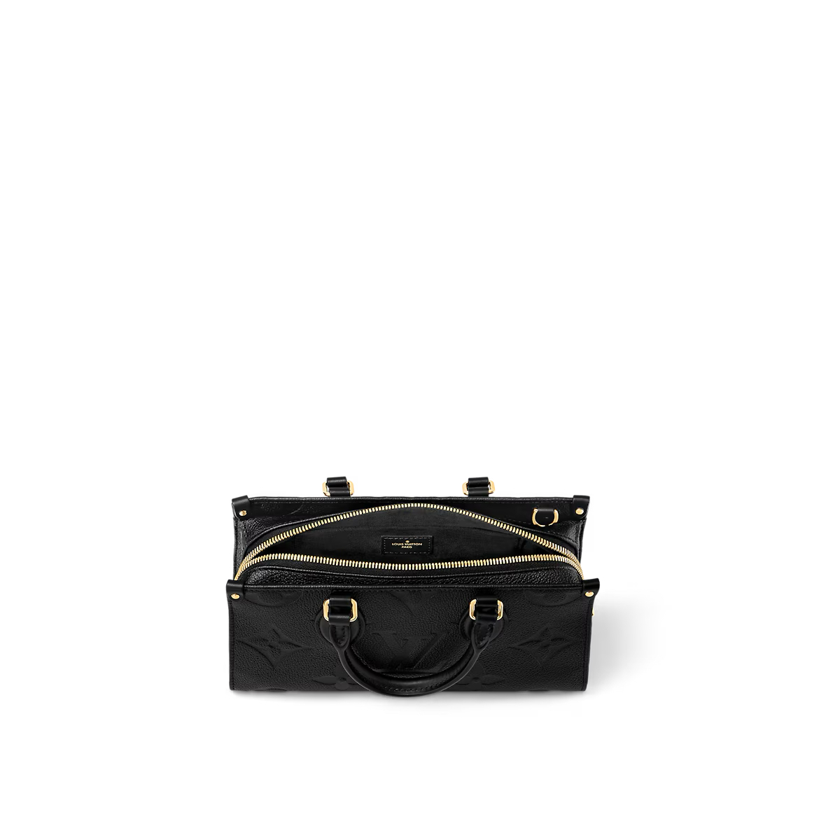 Introducing the OnTheGo East West tote, interpreted in a beautifully proportioned east-west silhouette. Made from Monogram Empreinte leather embossed with a tonal Giant Monogram motif, this compact model boasts a well-organized interior for daily essentials. The bag lends itself to a variety of carry styles, thanks to its two articulated top handles and a removable chain-and-leather strap.
