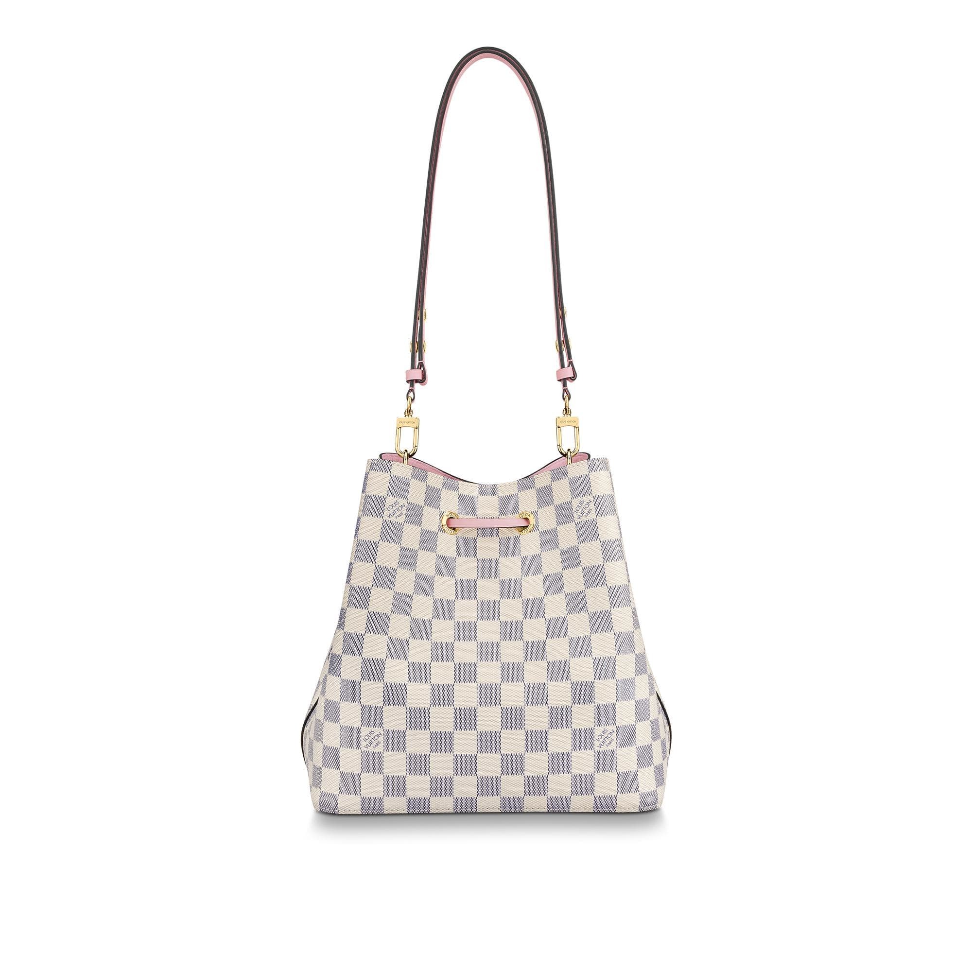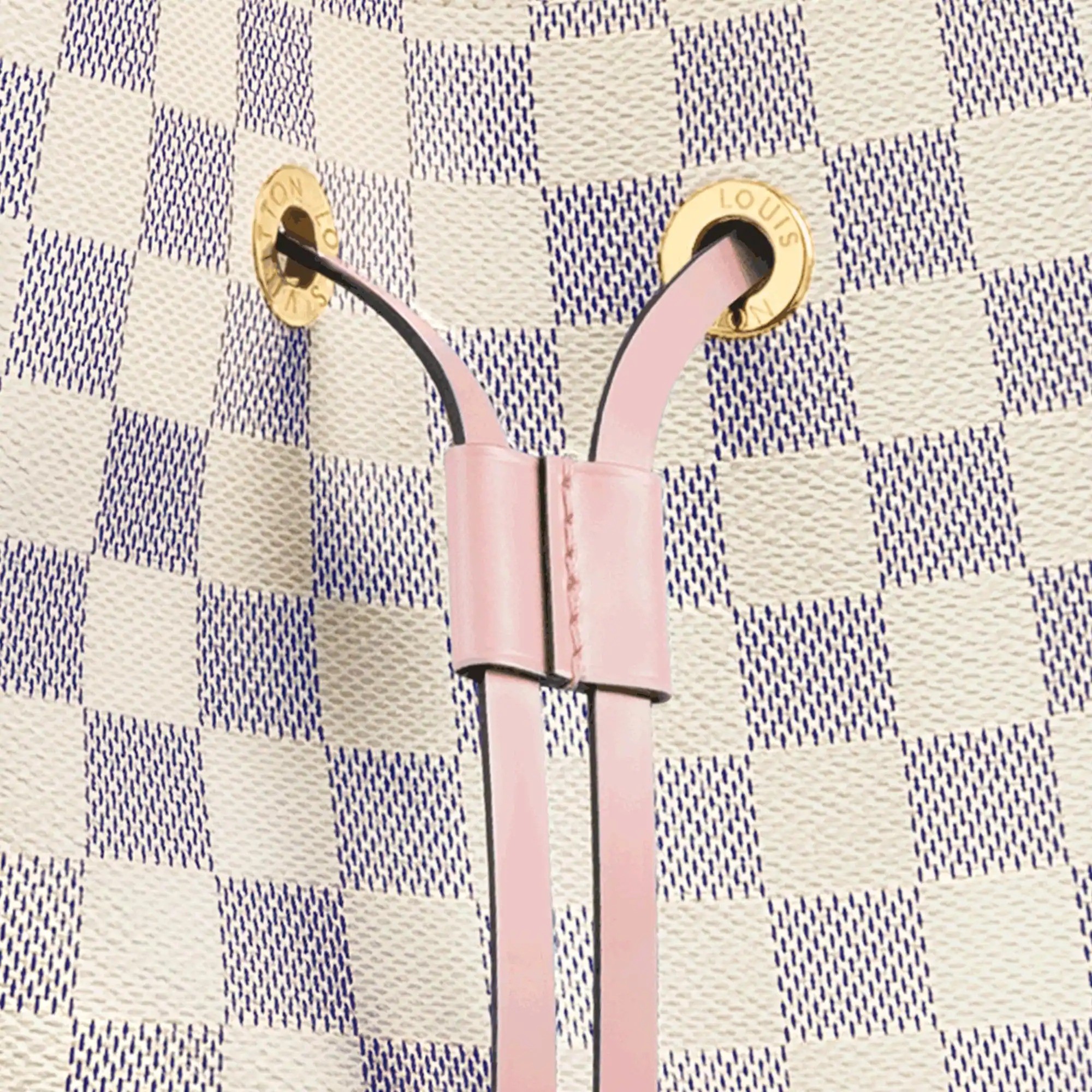 This limited edition of the NeoNoe bucket bag in Damier Azur canvas captures the very spirit of summer with its pastel leather trim and colorful coordinated lining. It will bring a sunny. seasonal touch to any beach-to-city outfit. either slung over the shoulder or worn cross-body. thanks to the removable. adjustable strap.