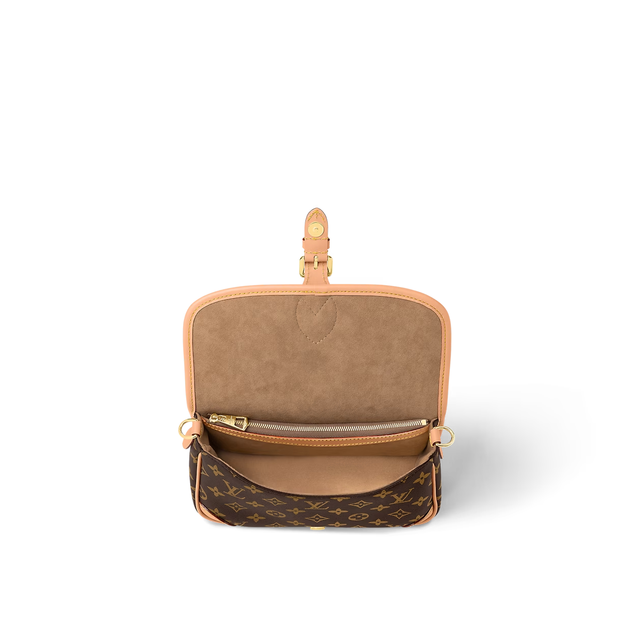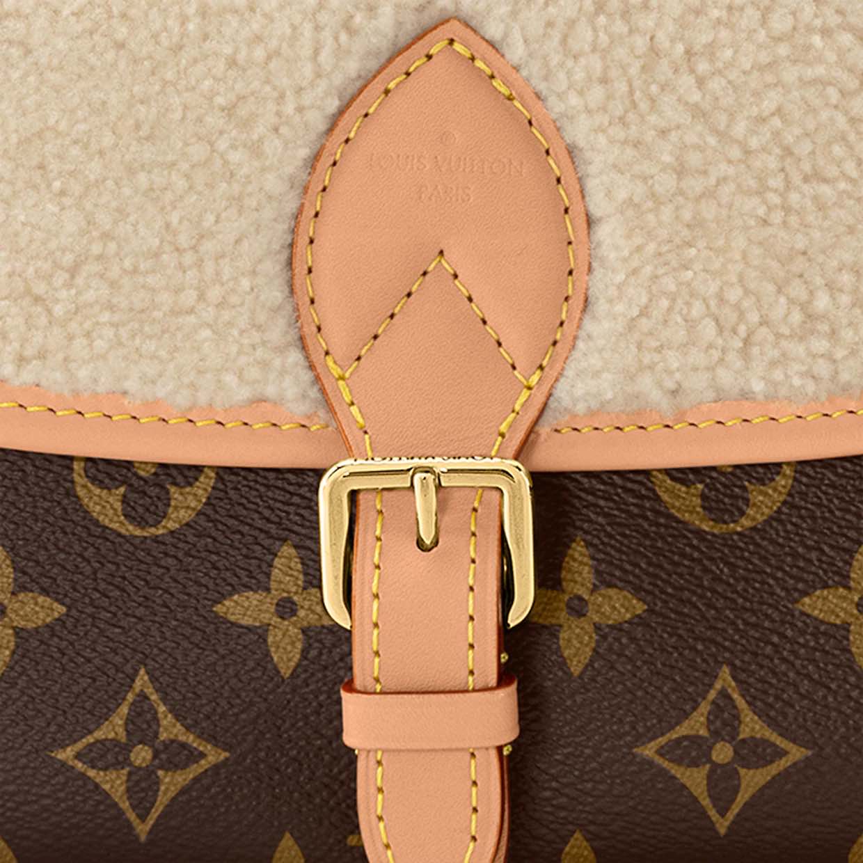 Soft, cream-hued shearling combines with iconic Monogram canvas in the Diane handbag, new for Winter 2022. Part of the Cozygram capsule collection, this covetable model is detailed with aged natural cowhide trim and gleaming gold-finish hardware. The detachable top handle and long leather strap offer a range of styling and carry options.