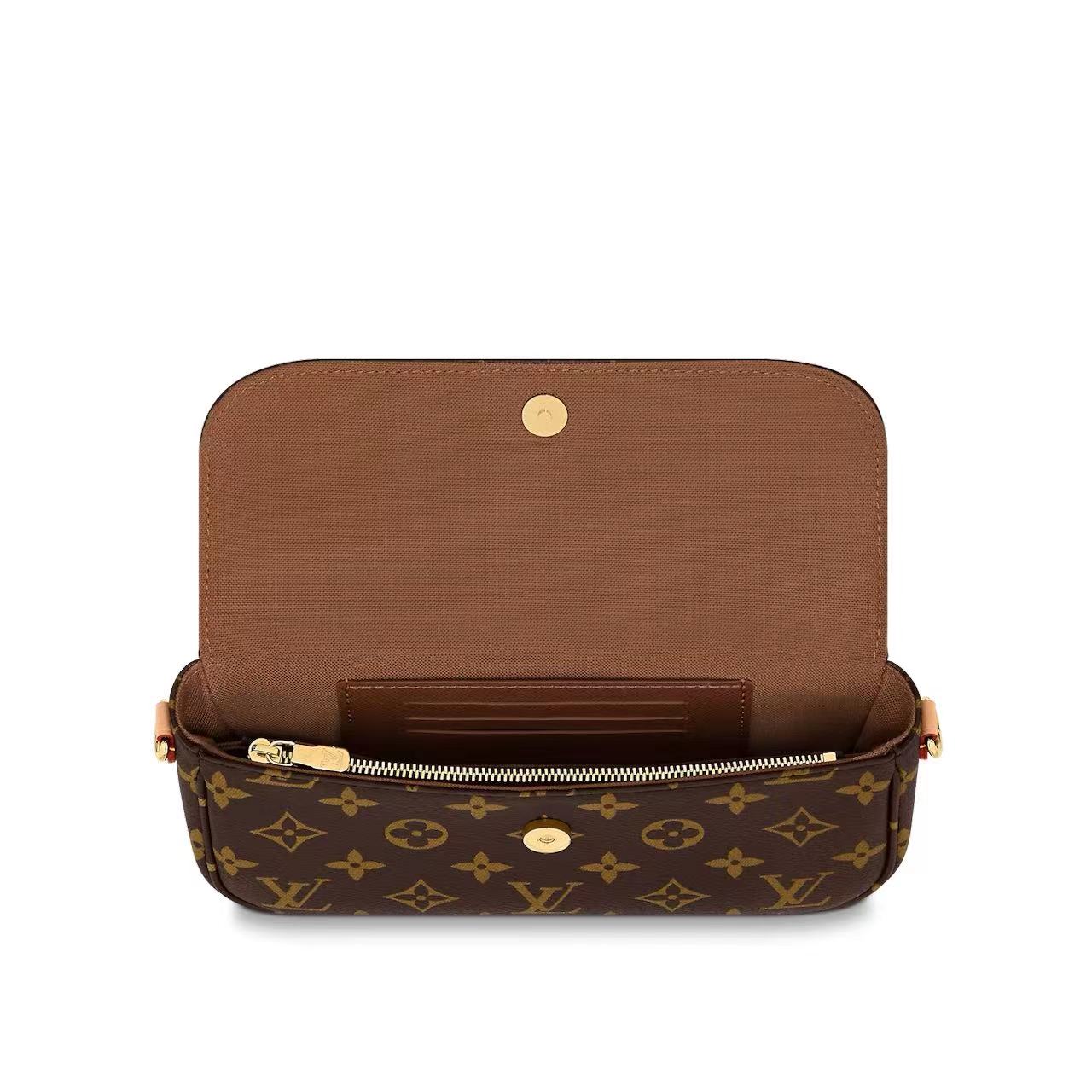 Inspired by the Sac Recoleta handbag from the 2000, the on-trend Wallet On Chain Ivy bag is fashioned from Monogram canvas. The removable gold-color chain allows short-shoulder carry while the adjustable and detachable strap, in natural leather, enables cross-body and long-shoulder carry. Three card slots and a zipped inside pocket make it perfect for everyday essentials.