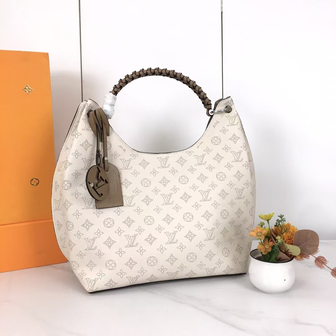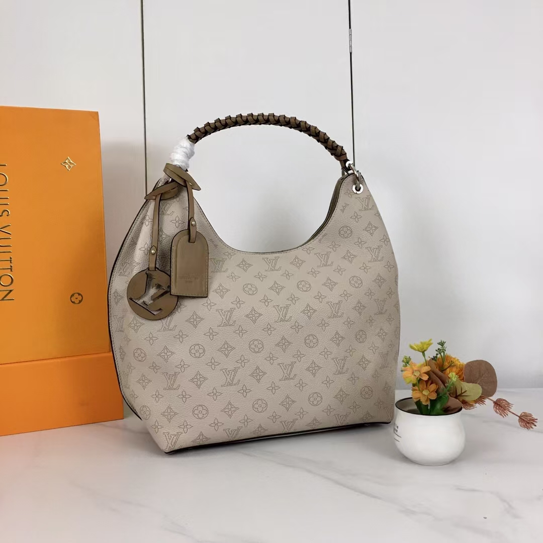 The Carmel hobo bag is a spacious, lightweight style in Mahina calf leather with Monogram perforations. The supple leather and the soft form of the bag combine to make it exceptionally pleasant to carry. Craft details such as the braided handle and leather charm add to the sophistication of this model.