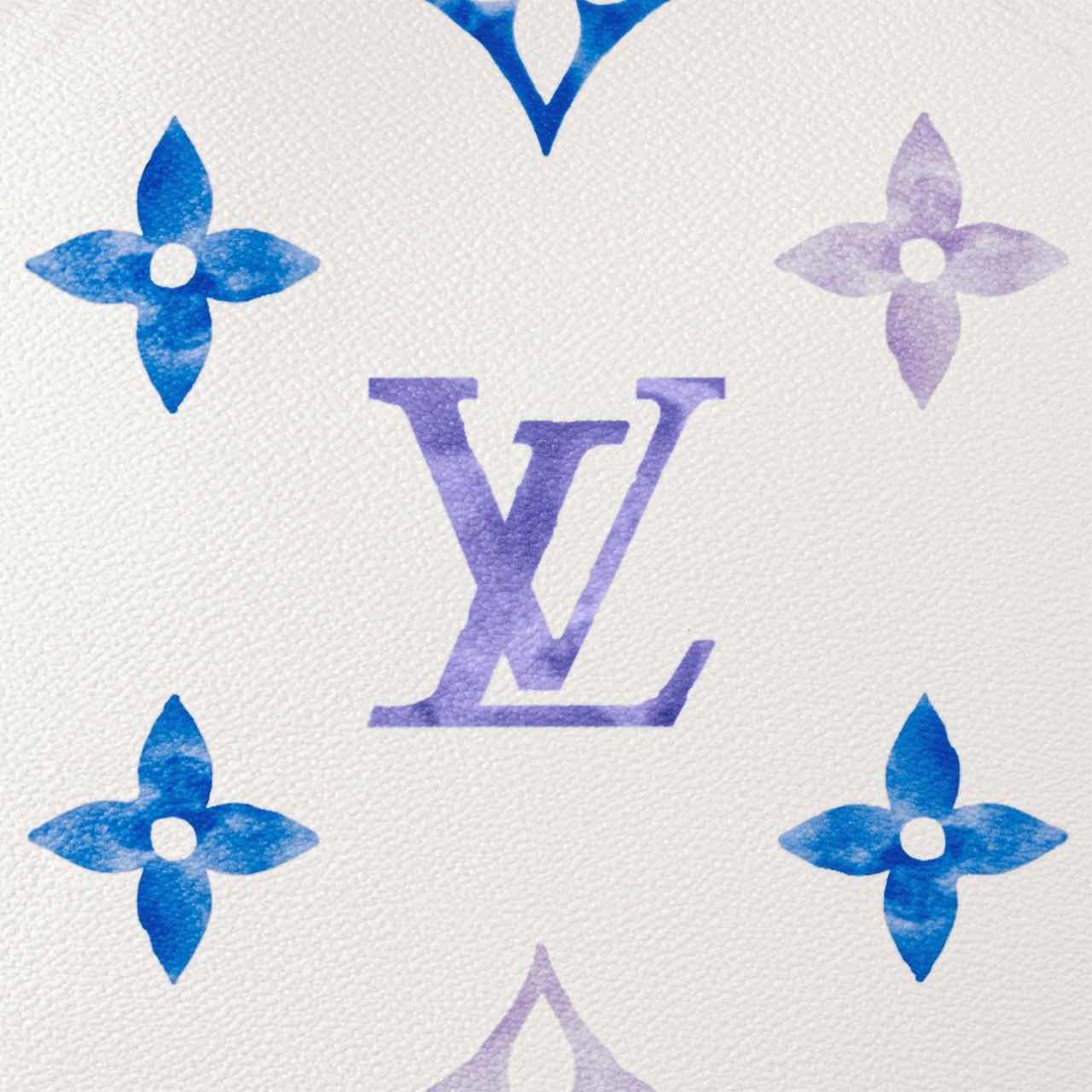 The Neverfull MM tote is summer-ready in cream-color canvas with a Giant Monogram pattern in pastel. The L's and Monogram Flowers are rendered irregularly, as if in watercolor, and are perfectly complemented by the dense Monogram Blossom print on the trim along the top of the bag and on the handles and their mounts.