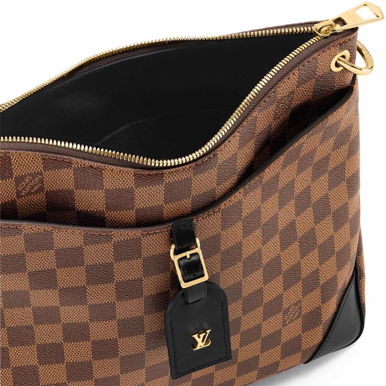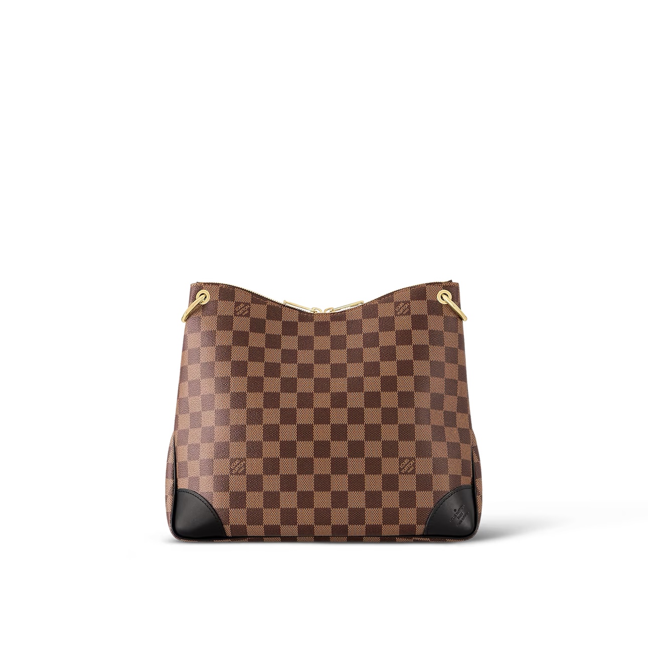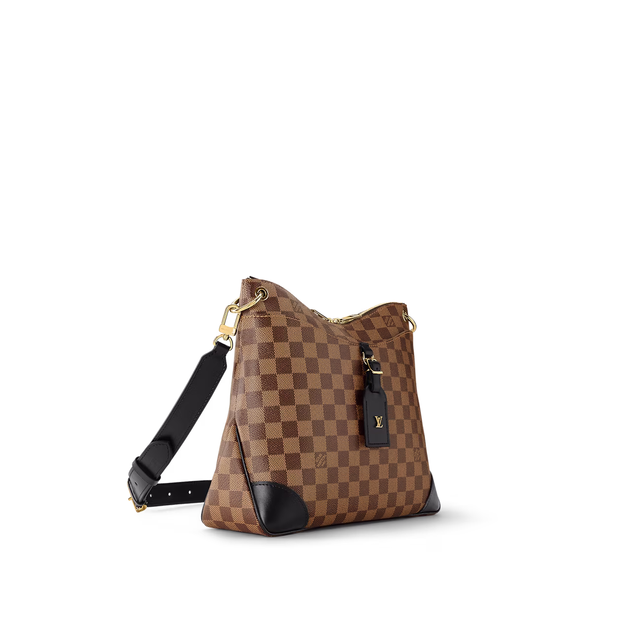Versatile and solidly on-trend, the Odeon MM bag is made from Damier Ebene canvas and finished with black leather trim, corners and name tag for a timeless feel. The body-friendly design and large capacity make it ideal for an everyday use. The adjustable leather strap allows two carry options: shoulder and cross-body.