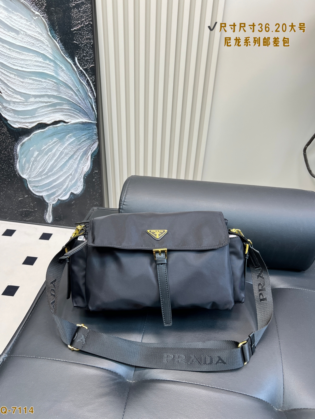 PRADA Waterproof Canvas Crossbody Bag with Gold-plated Buckle
