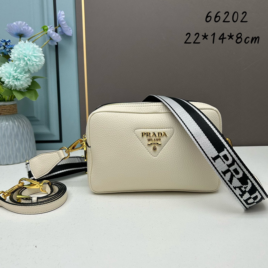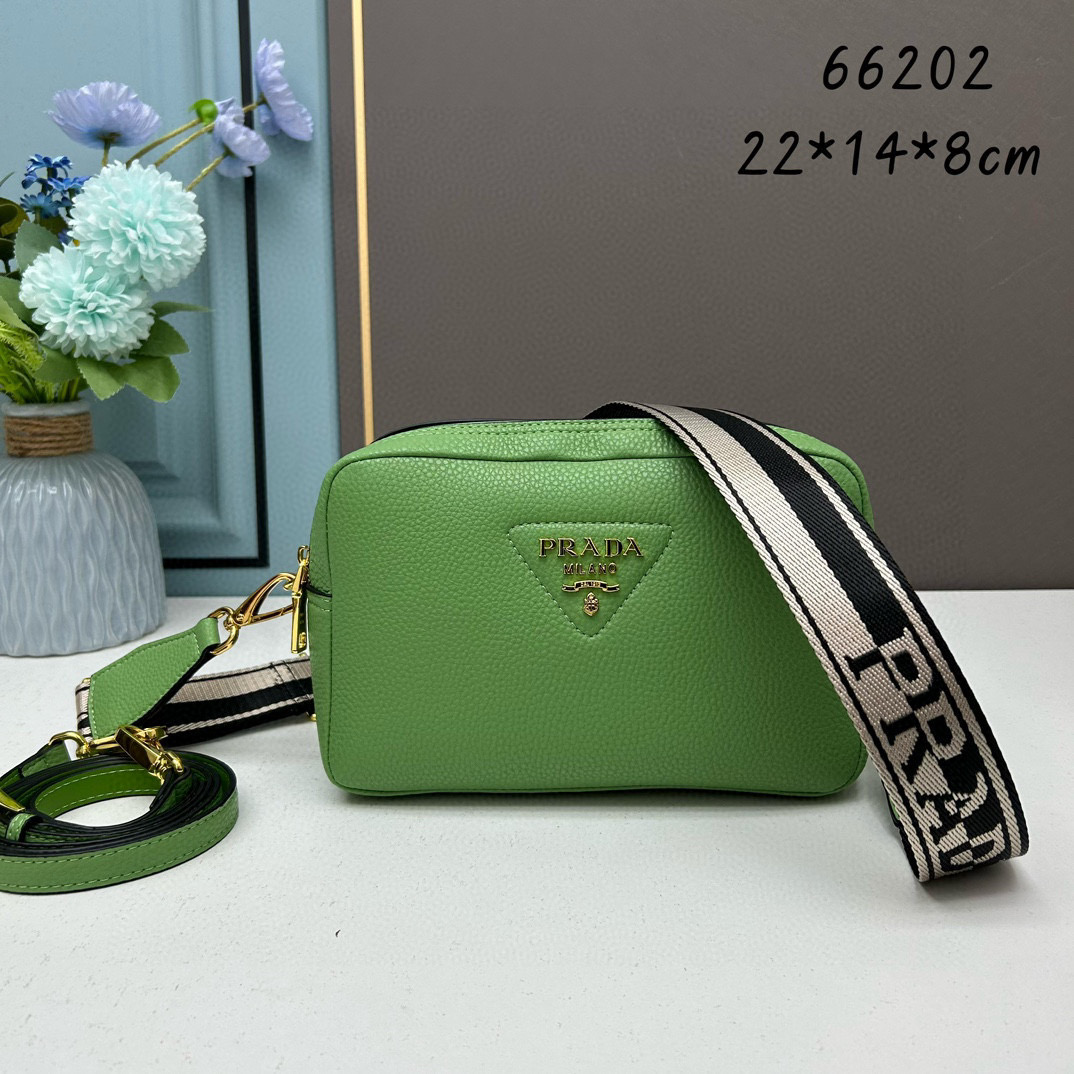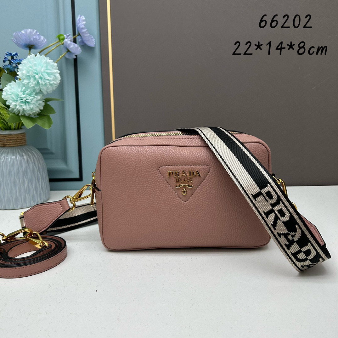Prada 66202 Camera Bag Double Strap Pebbled Leather Crossbody Bag