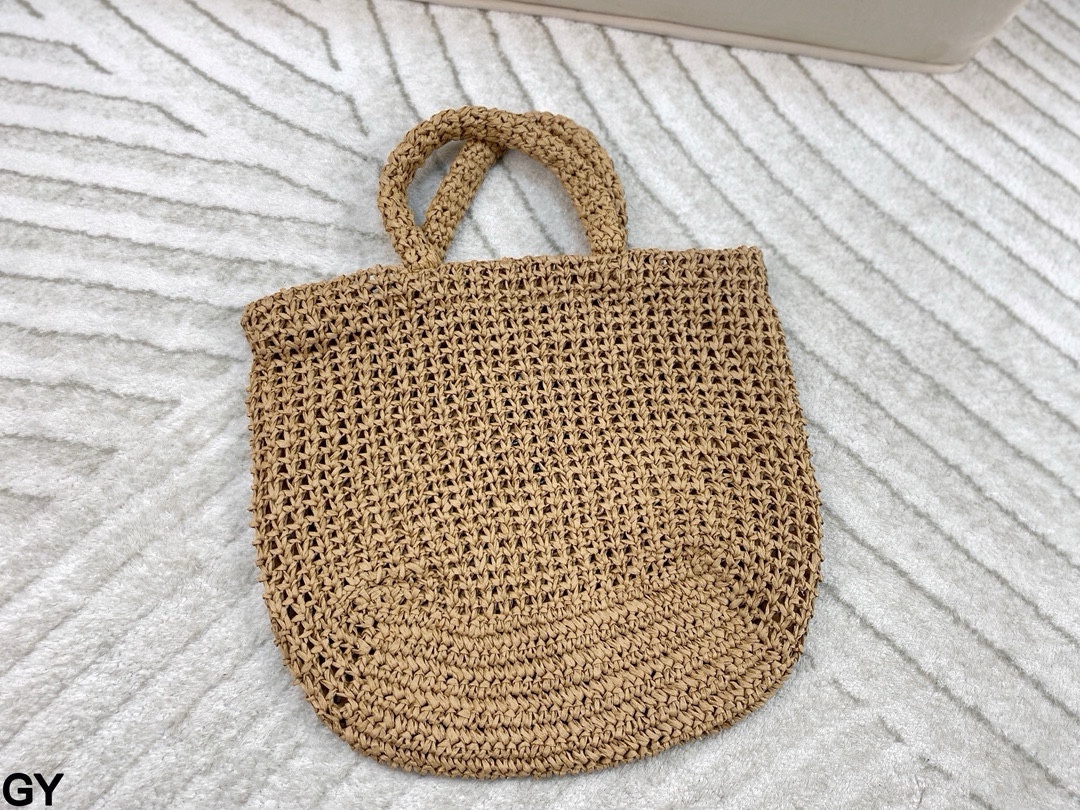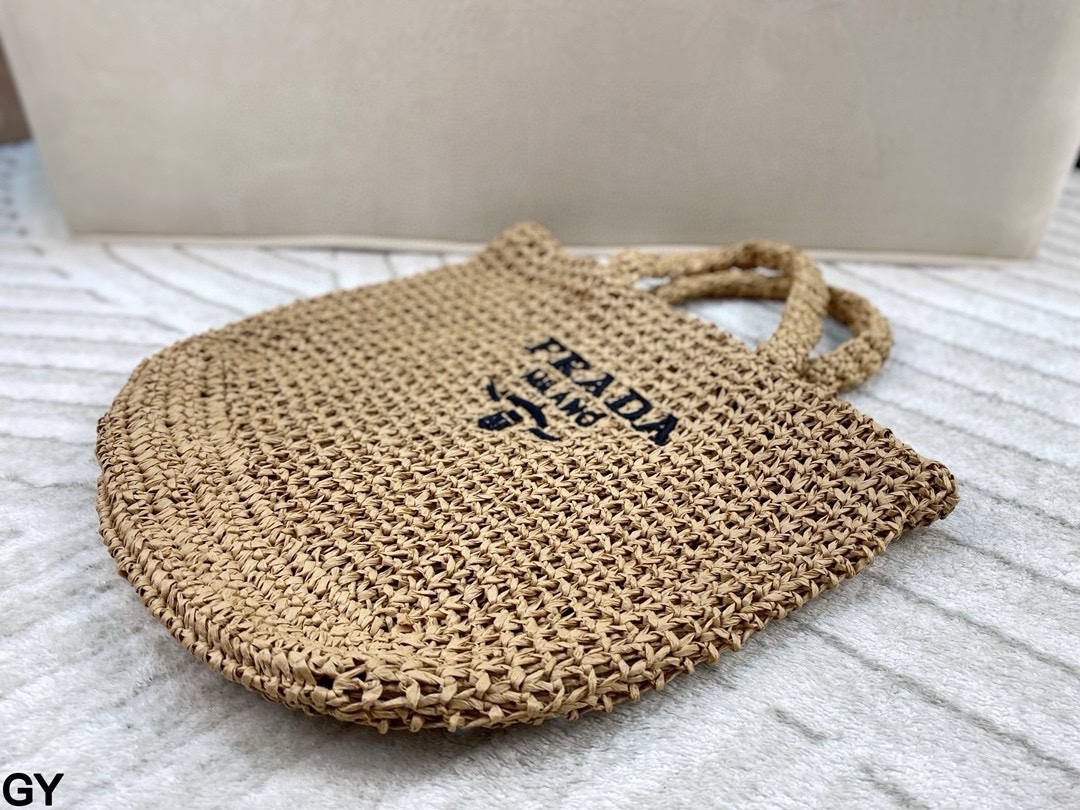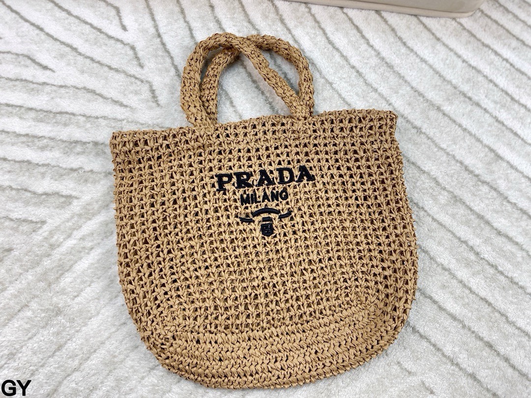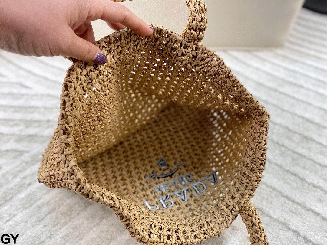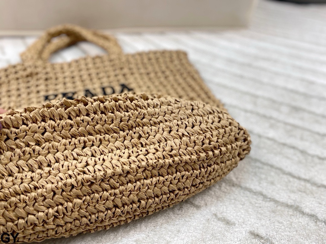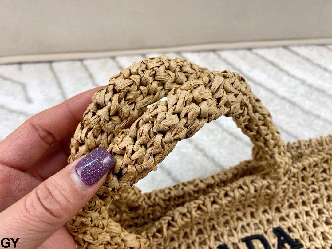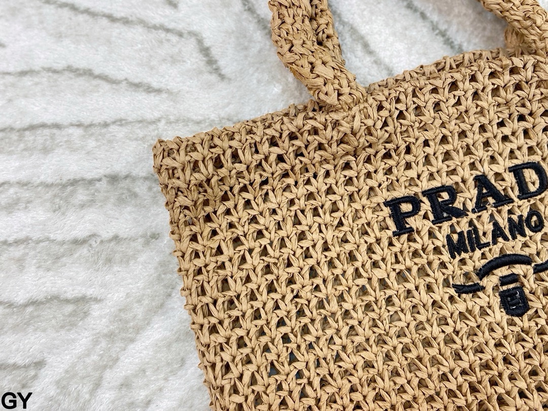 PRADA Raffia Tote Bag Natural Woven with Leather Trim