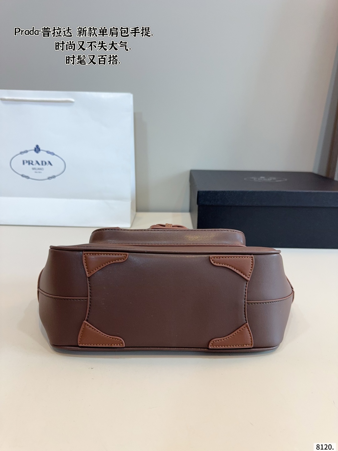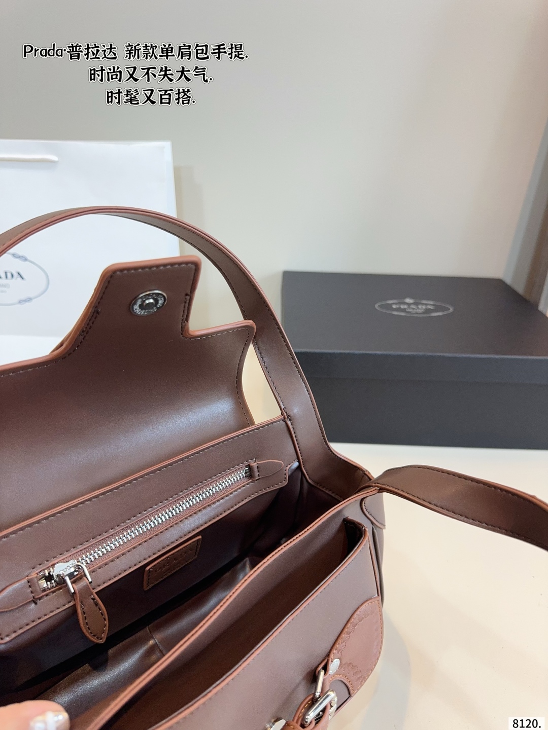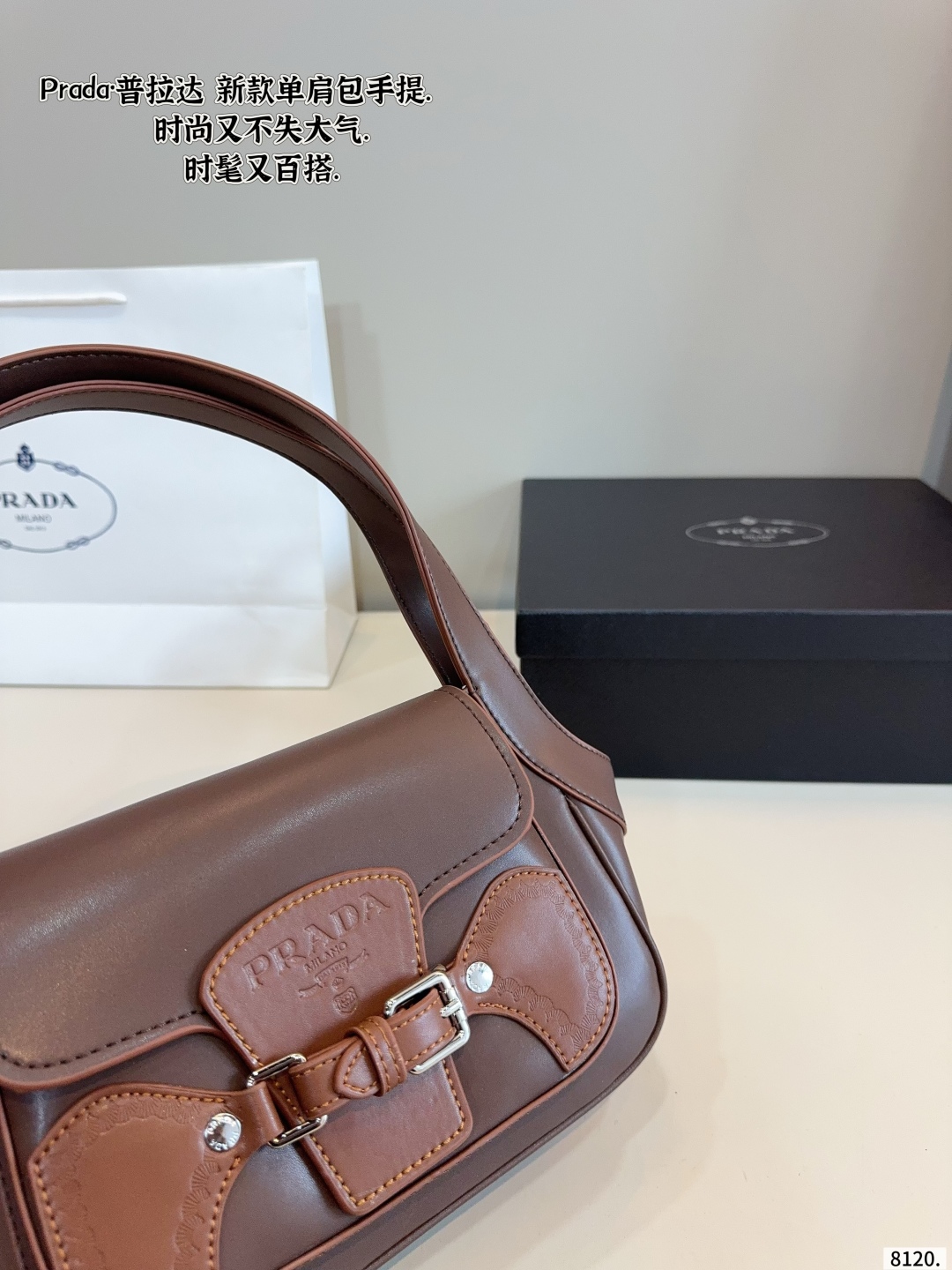 Prada Vintage Brown Carved Logo Shoulder Bag