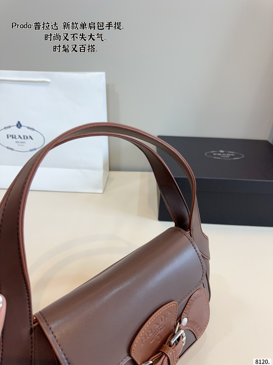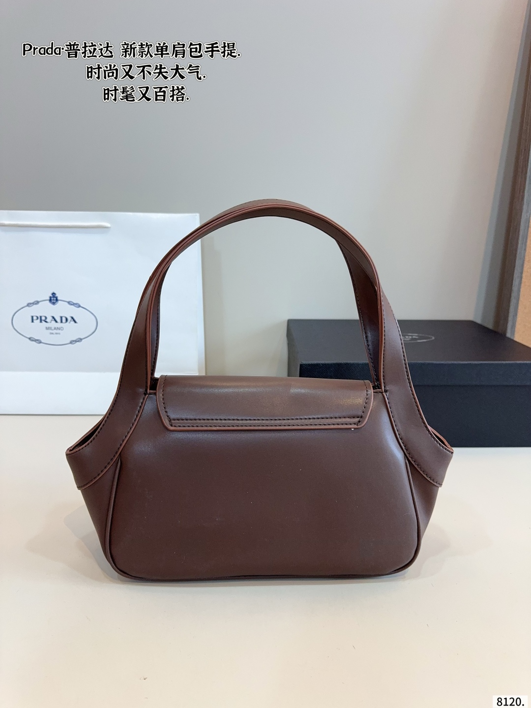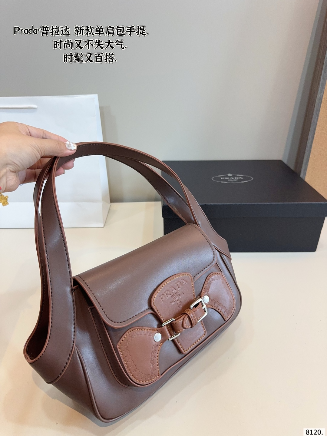 Prada Vintage Brown Carved Logo Shoulder Bag