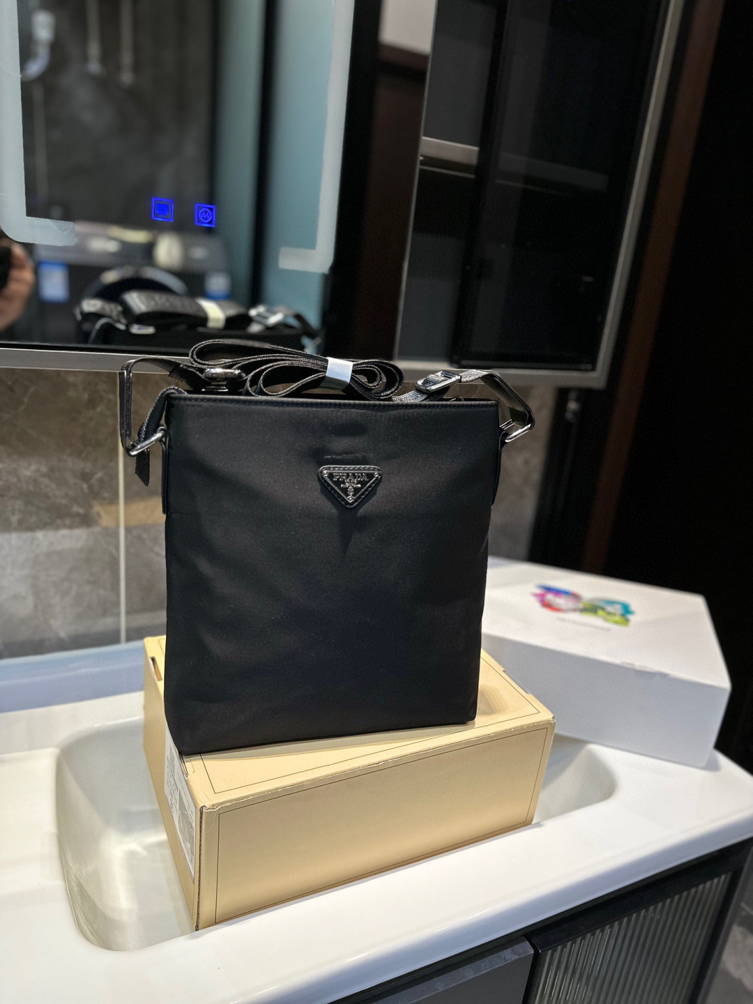 PRADA Waterproof Canvas Crossbody Bag with Gold-plated Buckle