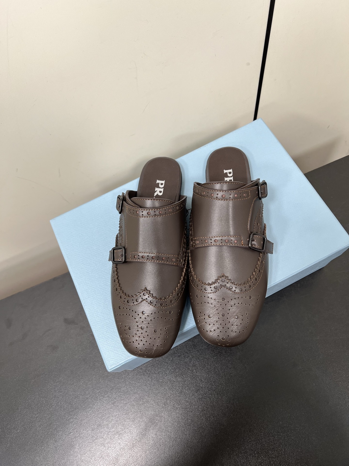 Prada 55Ss Hand-Carved Sculpted Flat Half Slippers Loafers