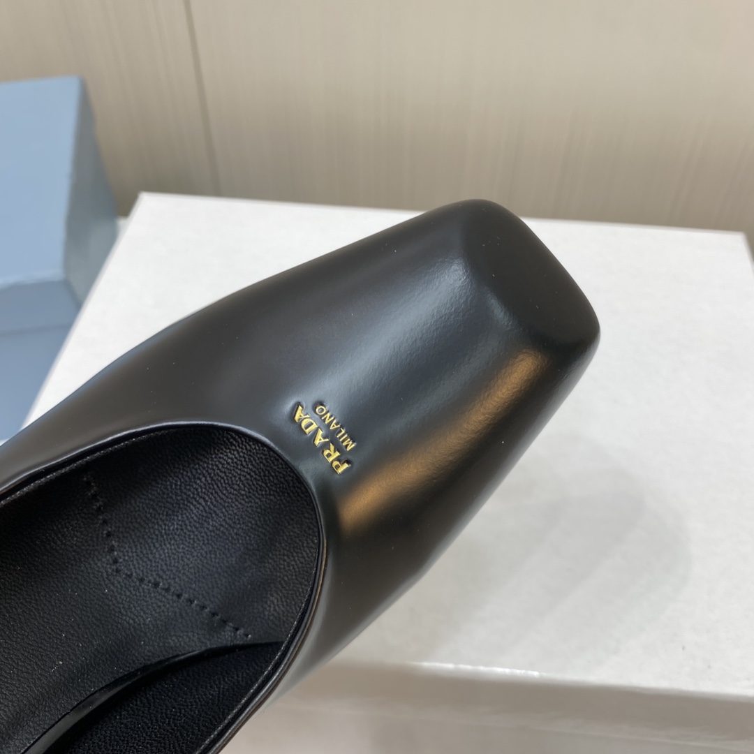• Prada Square Head High Heeled Chunky Sandals Slipper Rear Hollow Single Shoes
